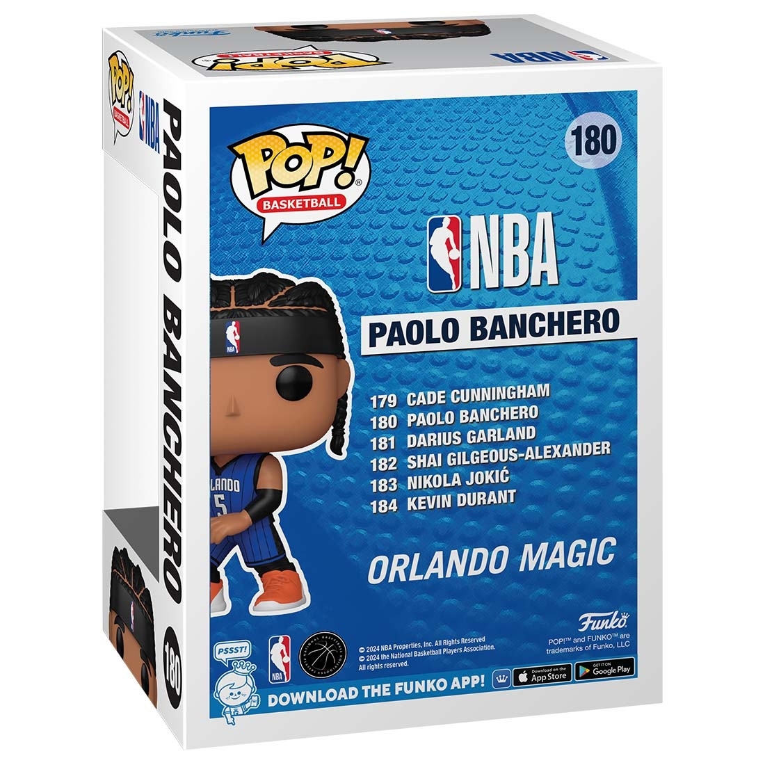 Funko POP! Basketball #180 NBA Vinyl Figurine from Orlando Magic Superstar Paolo Banchero in his blue jersey.