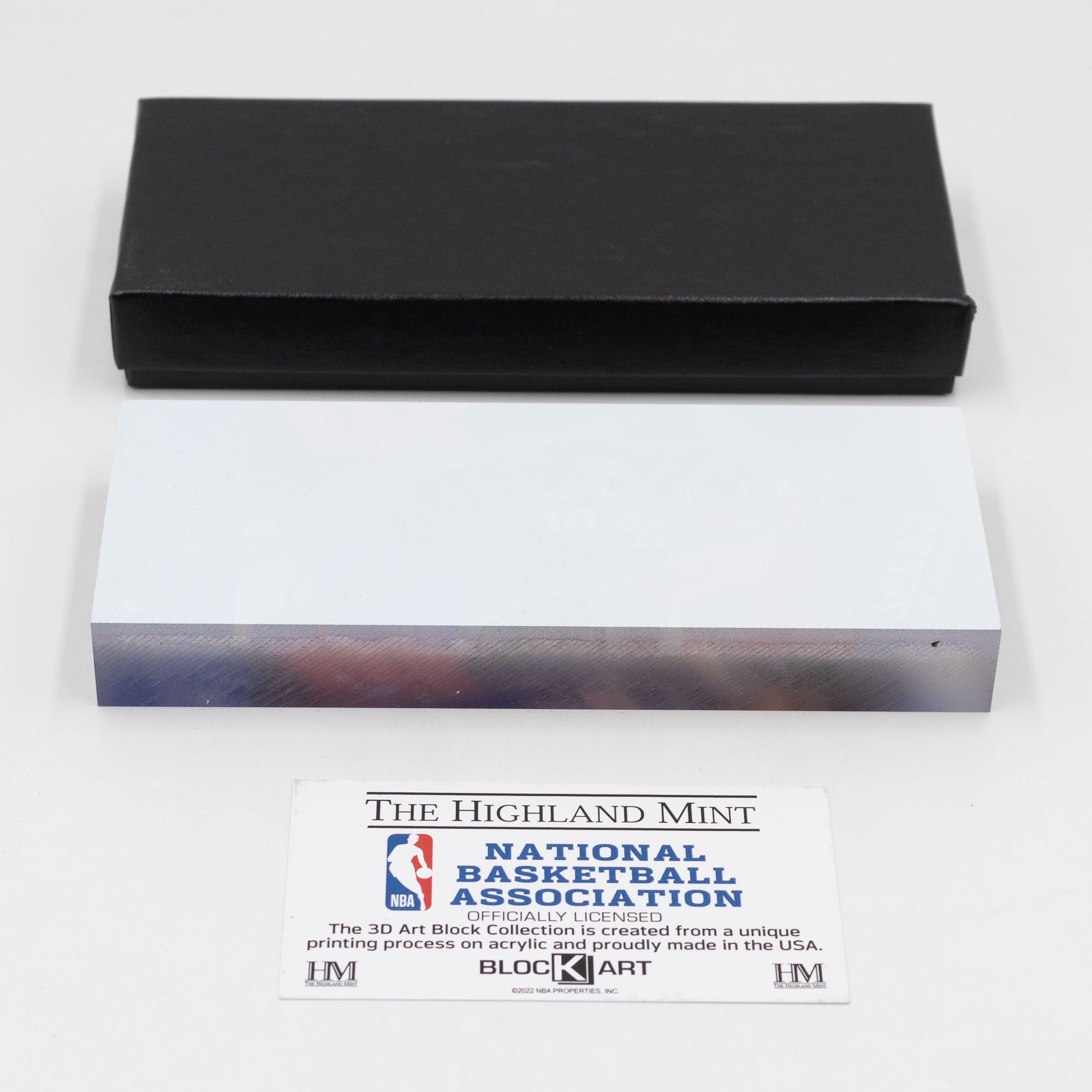 Each 3D player block is accompanied by a certificate of authenticity confirming its officially licensed by the NBA and proudly made in the USA by The Highland Mint.