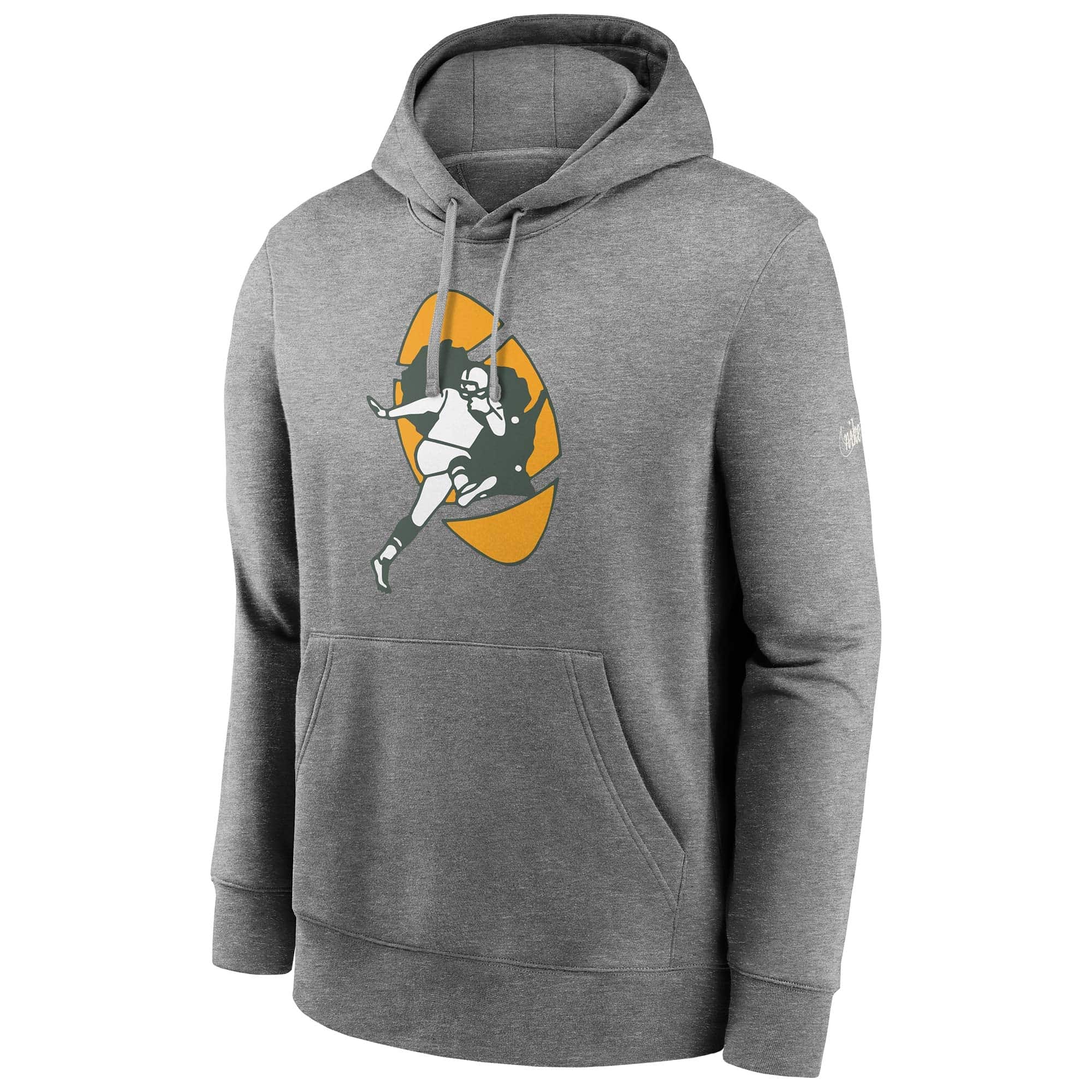 Throwback Football! Celebrate the good old times with the classic NFL look. This Nike pullover hood features rewind Green Bay Packers team logo decoration on front. With vintage Nike Swoosh print on left sleeve. Show your long-standing team support with this NFL sweater!