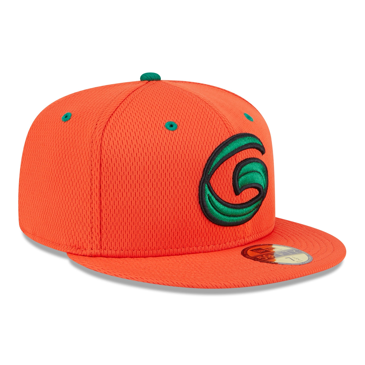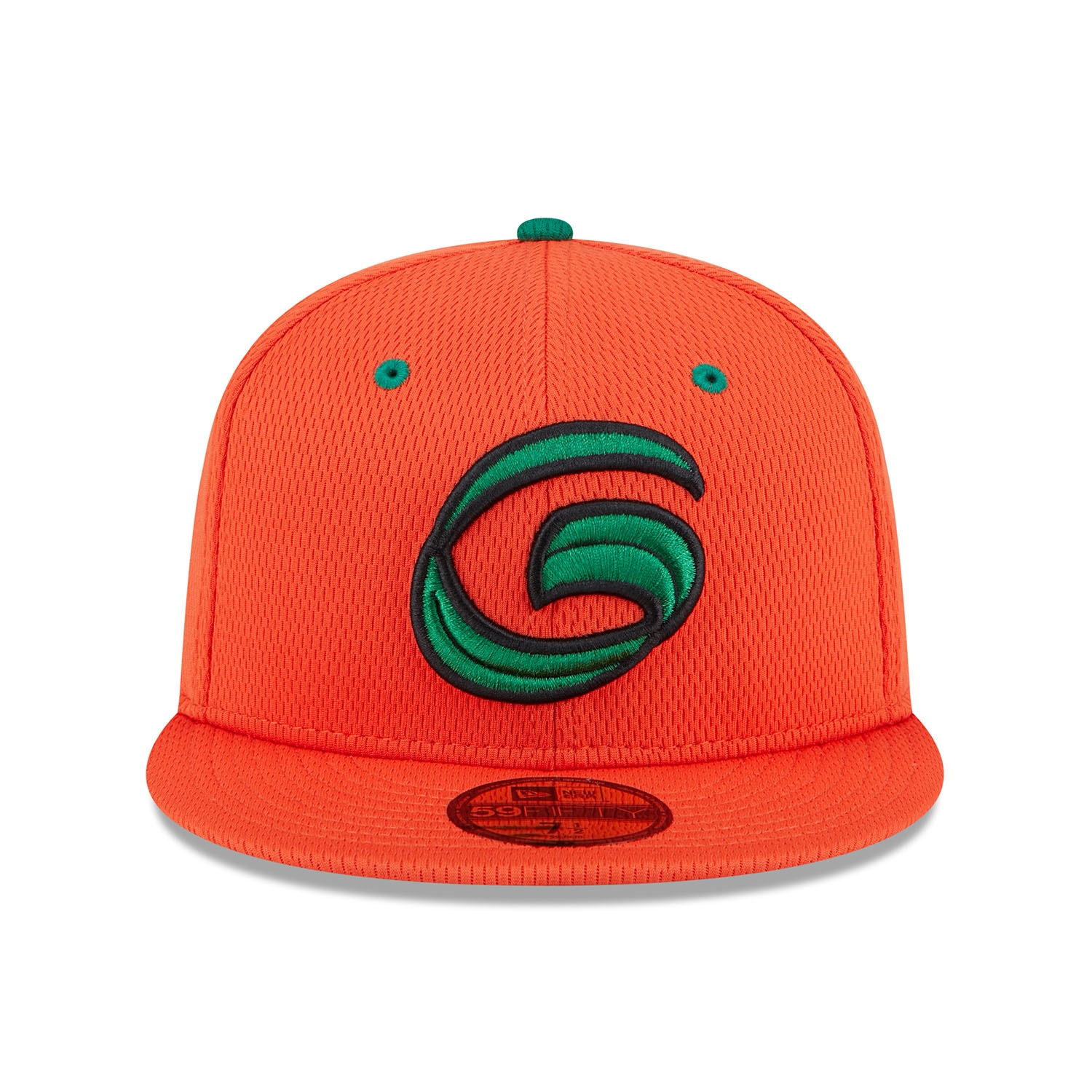 New Era MiLB Official Batting Practice Collection 59FIFTY Fitted Baseball Hat from your Greensboro Grasshoppers.