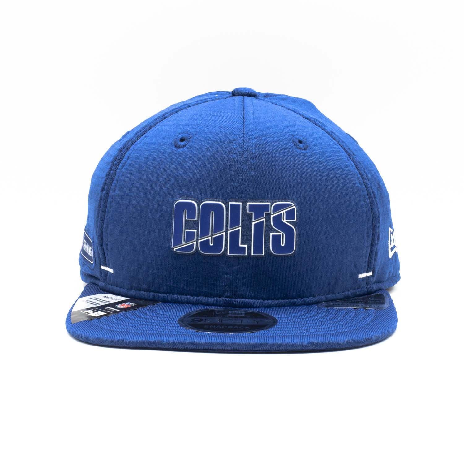 New Era Official 2020 NFL Training Summer Sideline Collection Original Fit 9FIFTY Snapback Hat from your Indianapolis Colts.