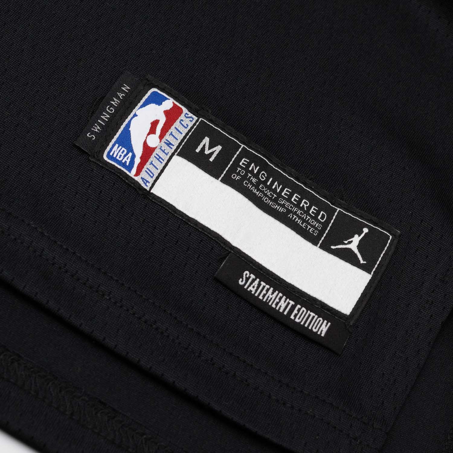 - Jordan Jumpman logo on the chest, NBA logo on the back