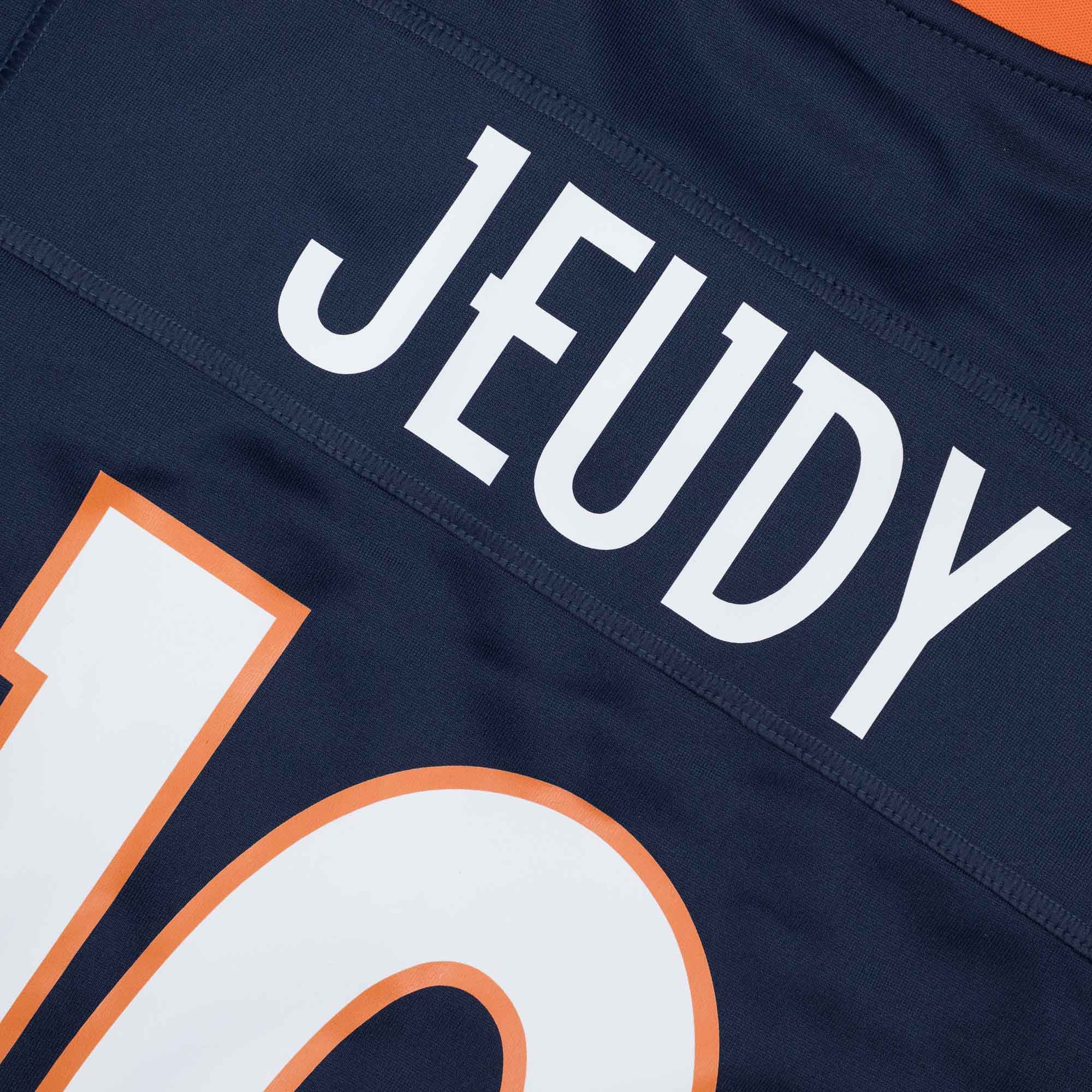 Rep your favorite team and player anytime in the NFL Game Jersey, inspired by what they're wearing on the field and designed for total comfort. The jersey features screen-printed Jerry Jeudy Denver Broncos graphics letting everyone know who you cheer for: Dawg Pound! Featuring strategic ventilation for breathability, woven jock tag at front lower left, NFL shield at V-neck.