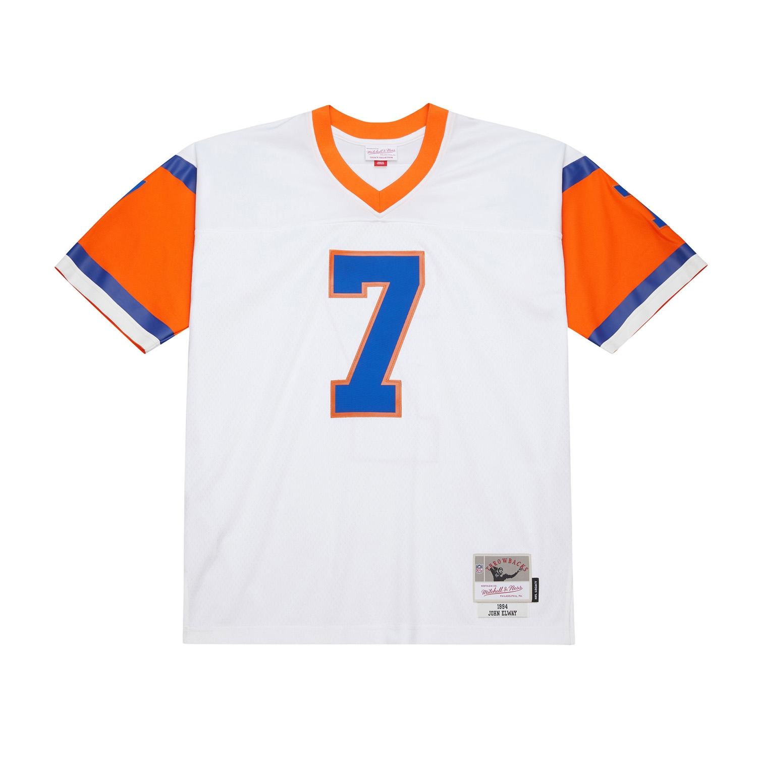 Honor one of the greatest quarterbacks in NFL history with the official Mitchell & Ness Legacy jersey of John Elway. This throwback jersey pays tribute to the Denver Broncos' 1994 season and stands out with its premium retro look and classic design details.
