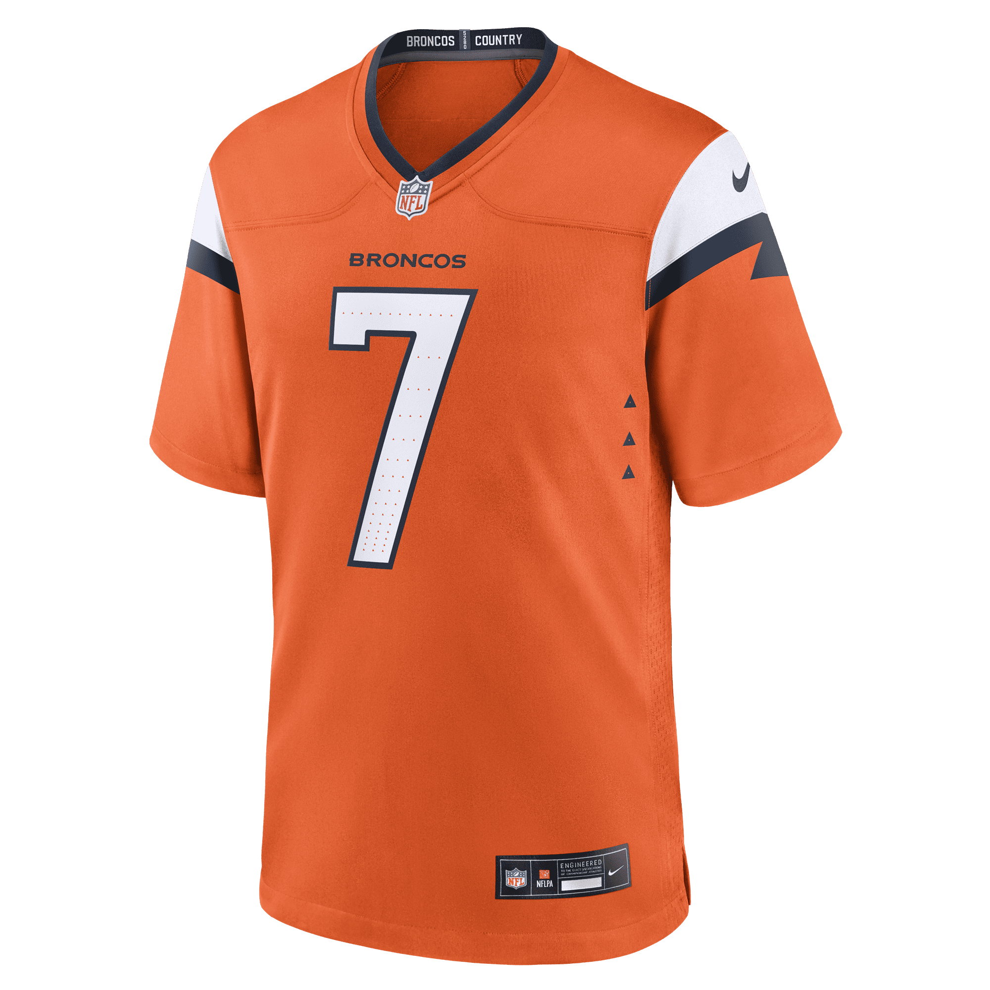Celebrate the history of the Denver Broncos with the Nike NFL Men's Jersey of legend John Elway in the orange Game Style. This jersey is a must-have for any passionate American football fan, combining nostalgic design with modern Nike quality.