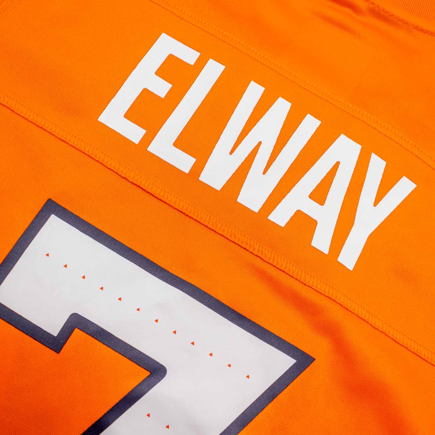 - Premium Craftsmanship: Made from 100% performance polyester, this jersey is part of the Nike Move to Zero collection, crafted from at least 75% recycled fibers. All logos, numbers, and letters are screen-printed for a durable and authentic appearance. The nameplate featuring John Elway's legendary name is also sewn on, giving the jersey a special premium look.