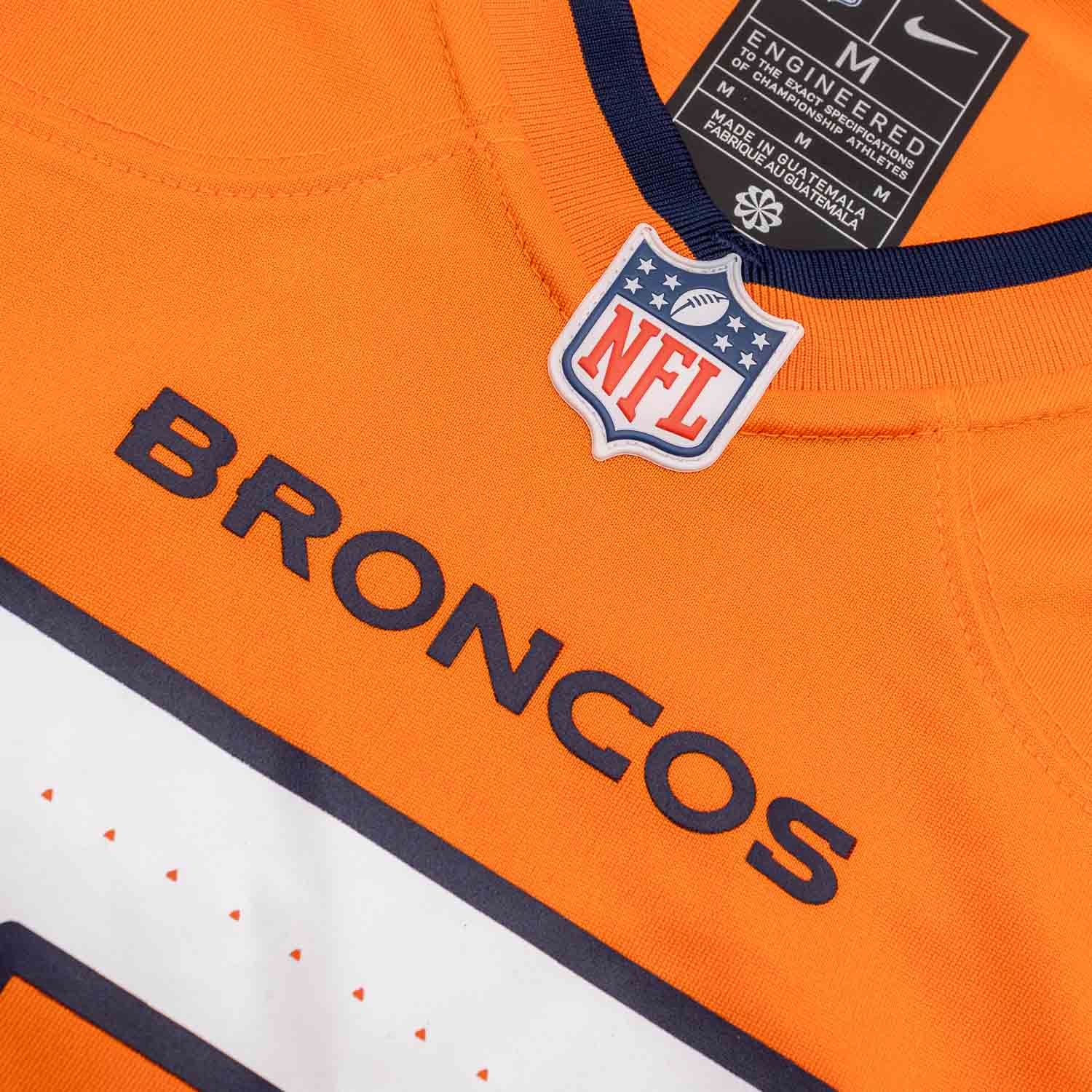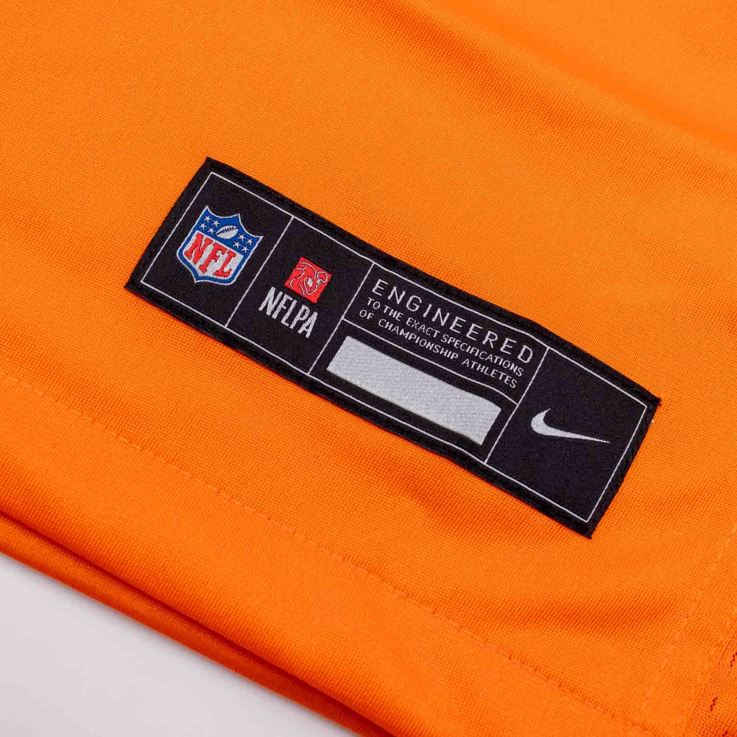 - Authentic Design: The jersey reflects the official design of the original NFL game jerseys, including the NFL shield at the collar and the equipment label at the hem. The iconic Denver Broncos stripes on the sleeves perfectly complete the look.