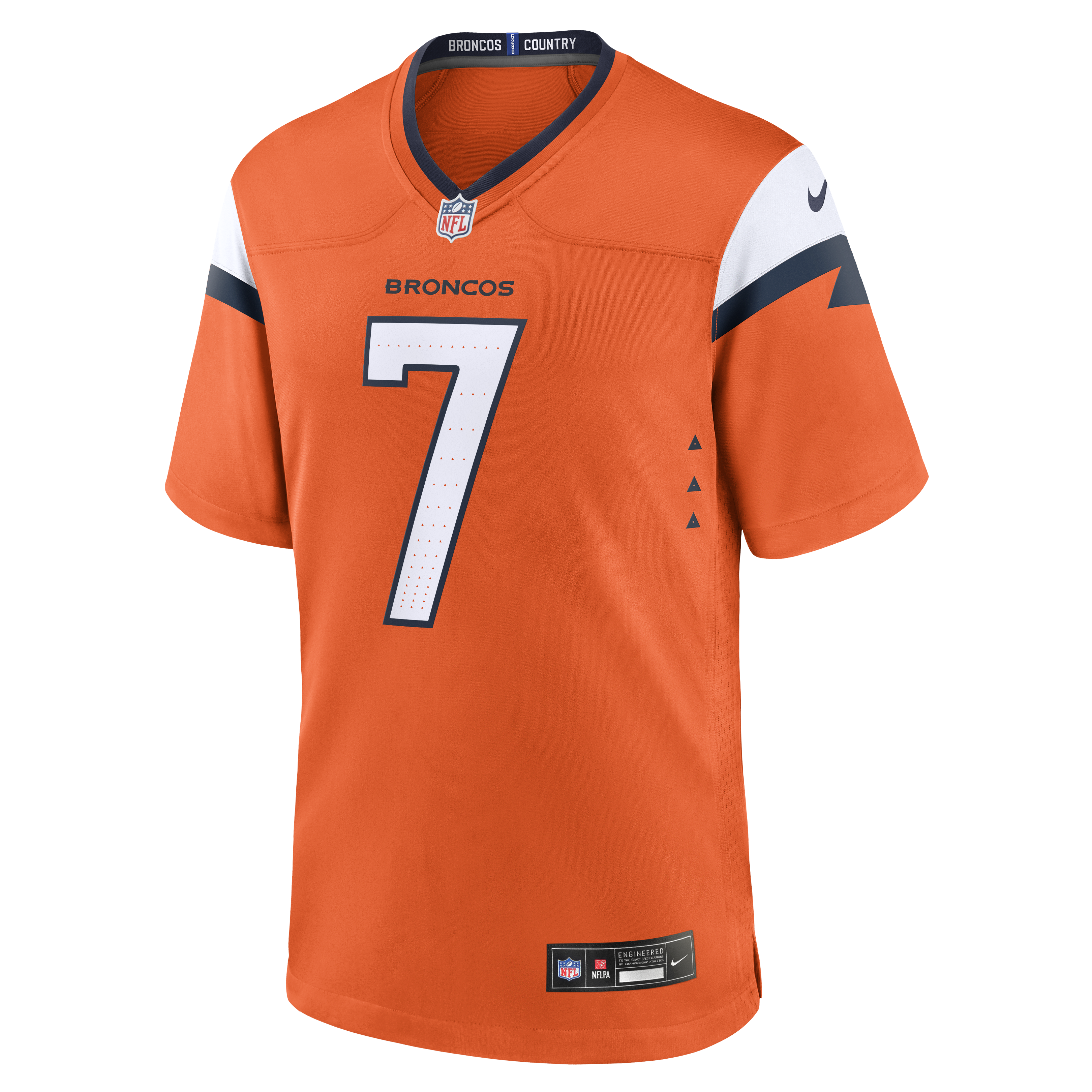 Celebrate the history of the Denver Broncos with the Nike NFL Men's Jersey of legend John Elway in the orange Game Style. This jersey is a must-have for any passionate American football fan, combining nostalgic design with modern Nike quality.