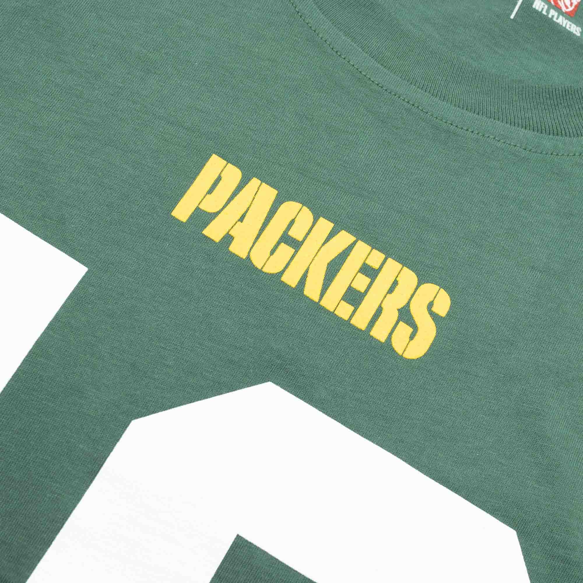 This Green Bay Packers t-shirt features screen-printed graphics of your favorite player's number and team name on the front. Back features NFL jersey style player name and number.