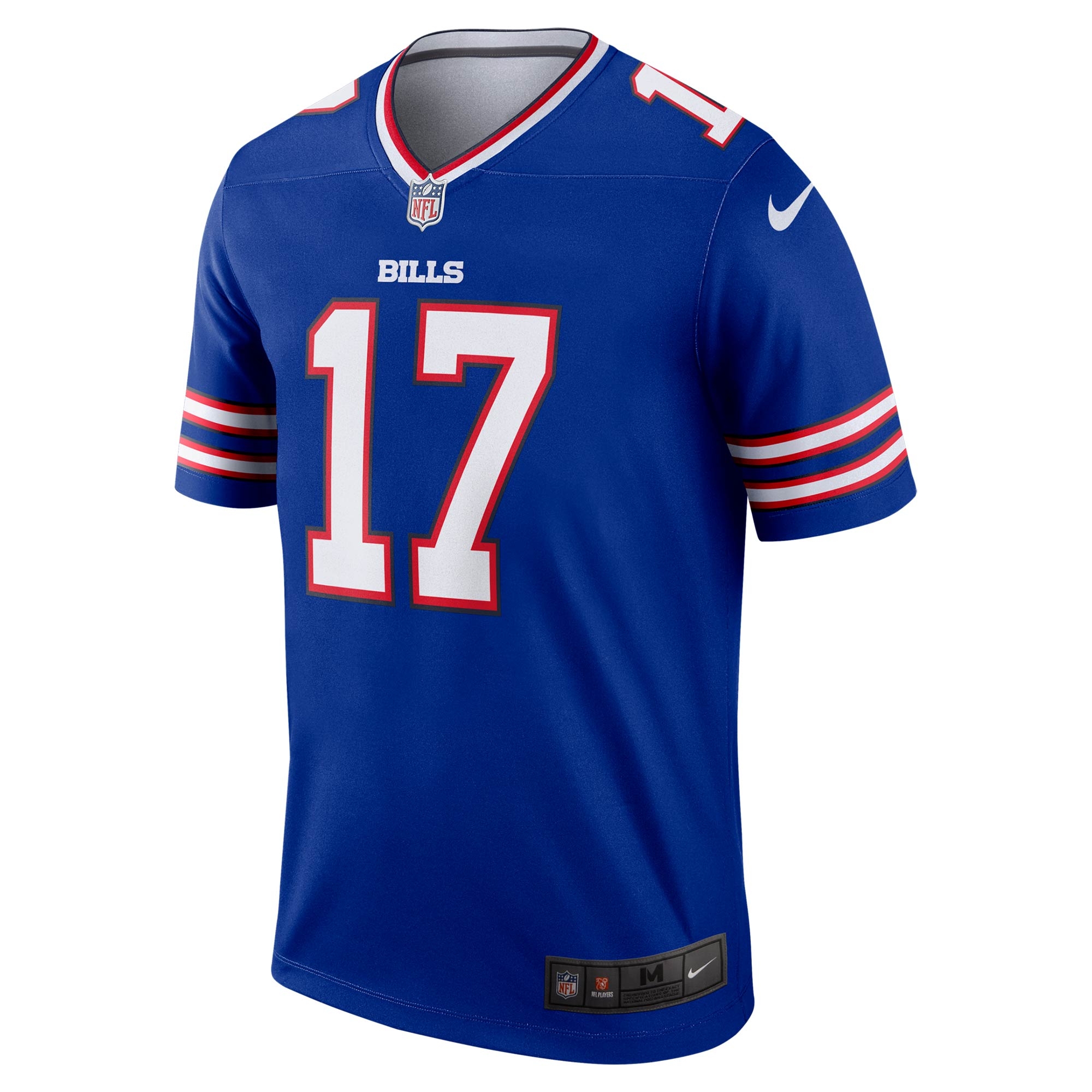 This Josh Allen Nike NFL Legend jersey keeps you comfortable with Dri-Fit technology and a standard, streamlined fit. Sublimated graphics inspired by the Buffalo Bills On-Field designs keep the jersey lightweight and breathable. Woven jock tag at front lower left, NFL shield at V-neck.