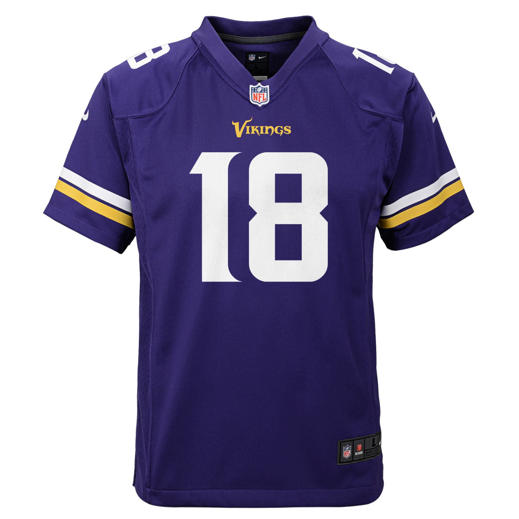 Nike NFL Youth Game American Football Jersey from Minnesota Vikings Superstar Justin Jefferson. Sized for Kids and Youth.