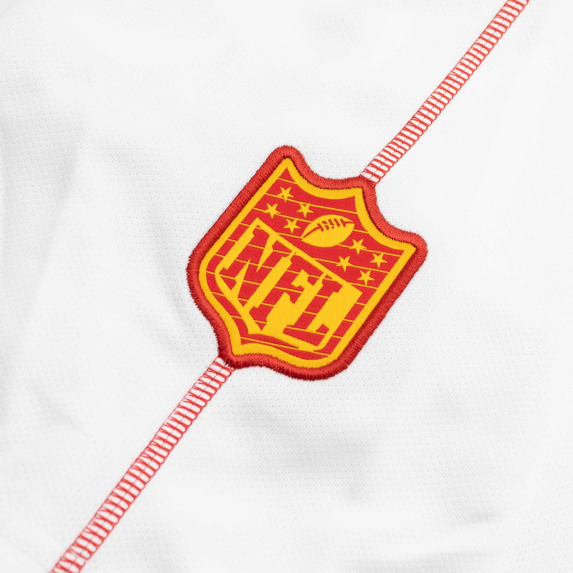 This Coach Top also stands out with its unique details: The right sleeve is embroidered with the NFL Shield, while the left sleeve proudly features the Nike Swoosh logo. The Cheifs lettering is printed on the right chest, stylishly showcasing your team allegiance. Made from 200 GSM polyester and produced under Nike's Move to Zero initiative, this top consists of at least 75% recycled material. So, you support not only your team but also the planet.