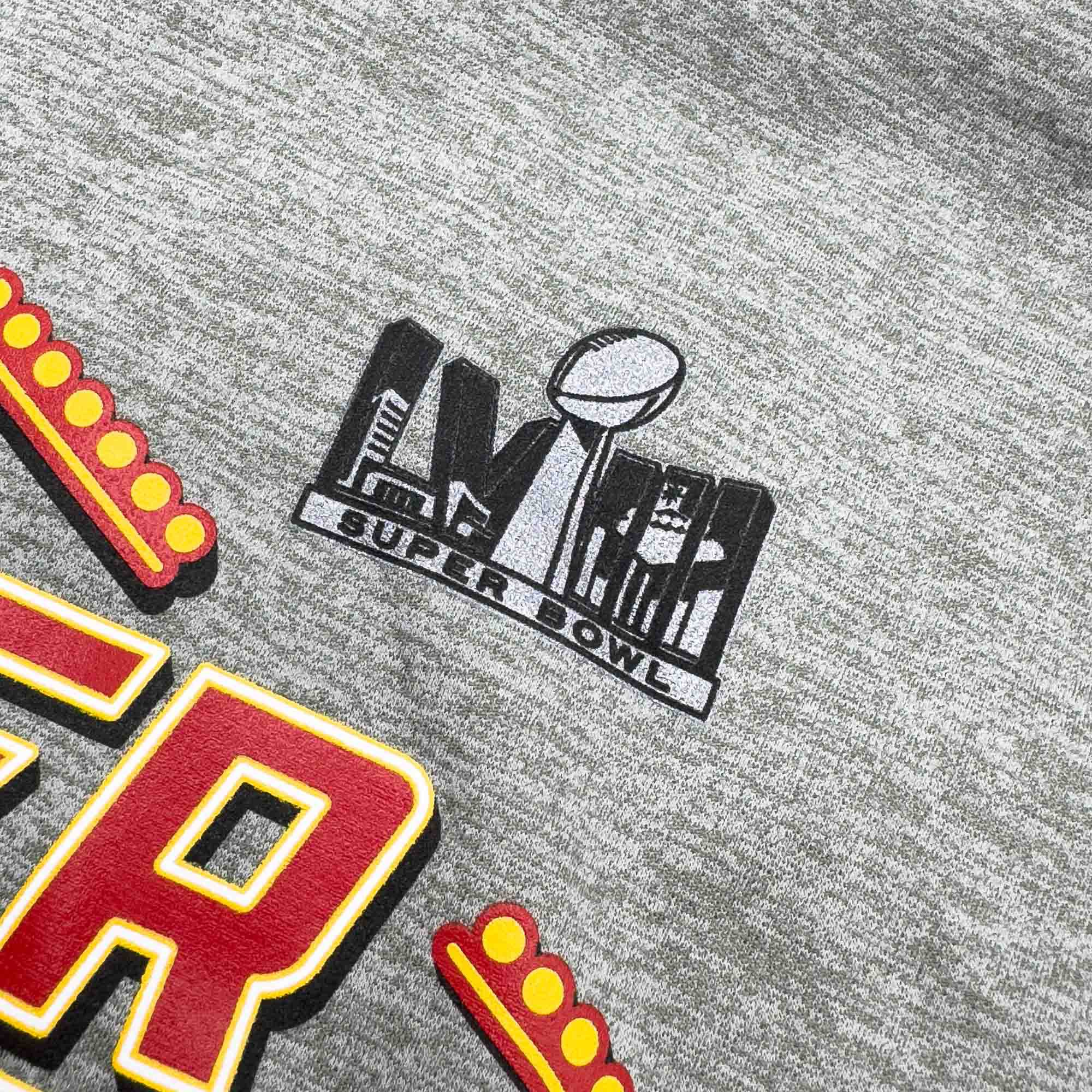 Celebrate the 2024 Super Bowl Champ with this official Locker Room Edition Pullover Hoodie by Nike. It features large front print with Super Bowl LVIII Champions wordmark, team logo and Super Bowl LVIII logo. Left sleeve shows Nike Swoosh logo.