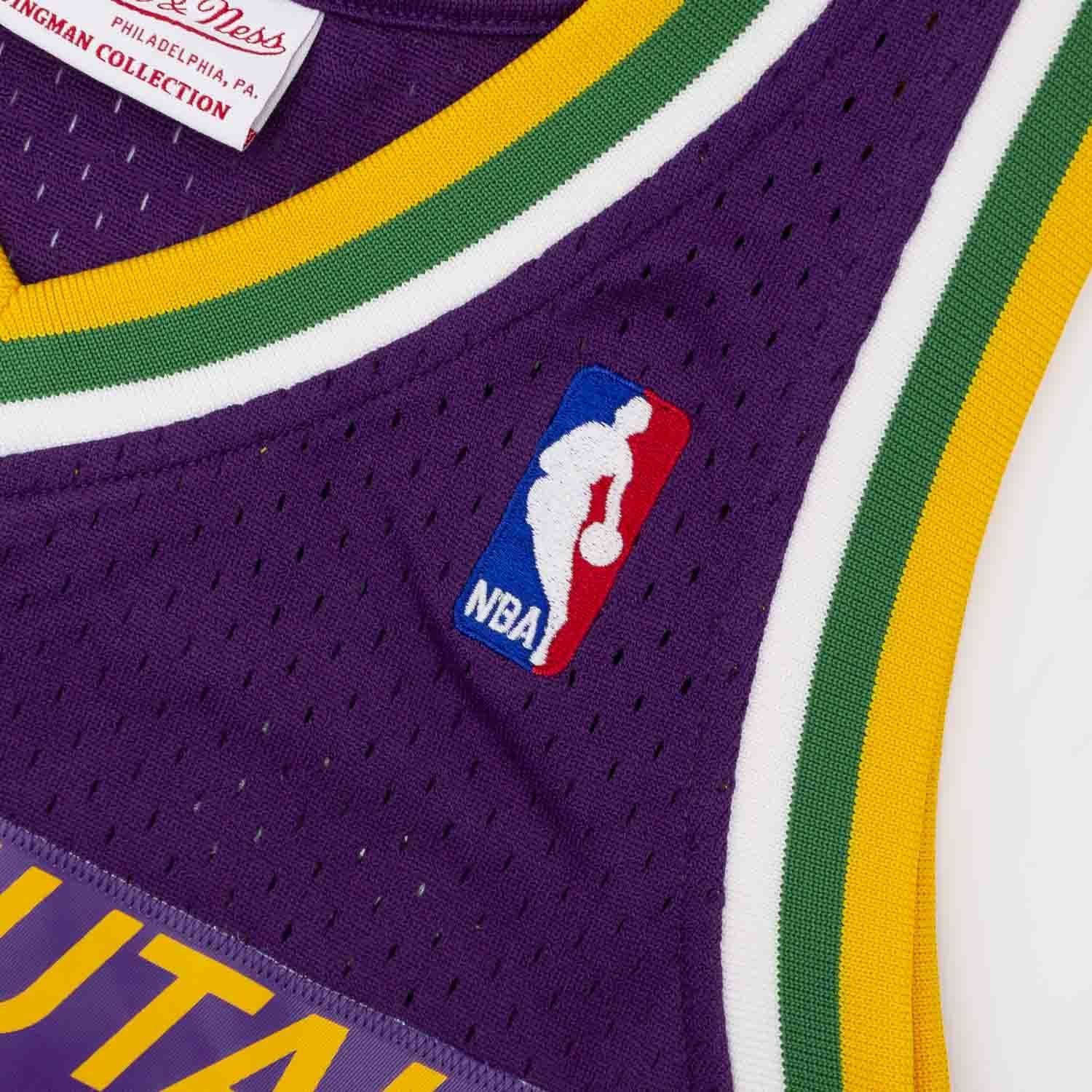 Rep your favorite team and player anytime in the NBA Swingman Hardwood Classics Jersey, replicating what the Utah Jazz have worn on the court during that era. With heat seal screen printed twill logo, name and number applications. The body is made from 100% polyester mesh. Woven Hardwood Classics-Mitchell & Ness jocktag at front lower left.