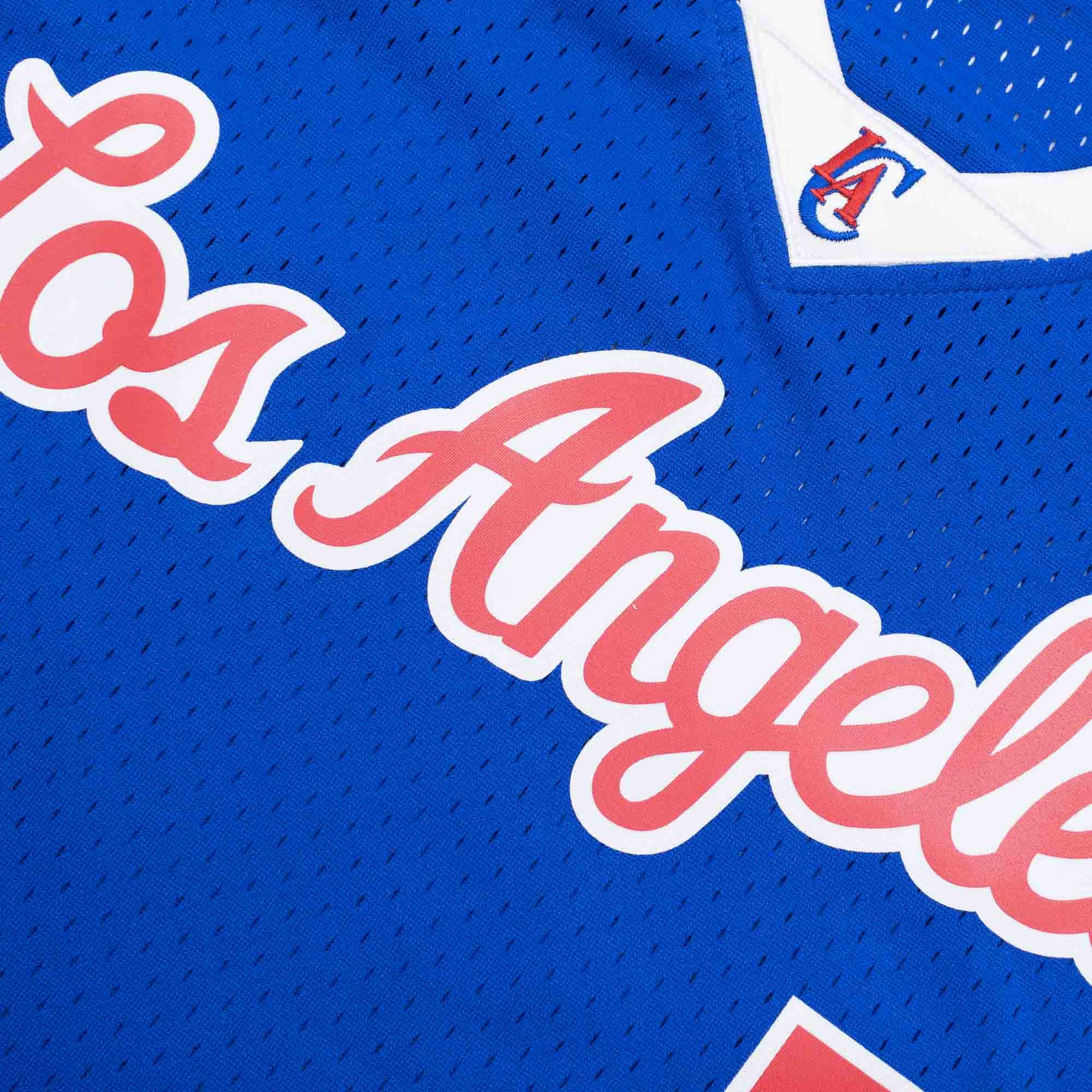 Rep your favorite team and player anytime in the NBA Swingman Hardwood Classics Jersey, replicating what the Los Angeles Clippers have worn on the court during that era. With heat seal screen printed twill logo, name and number applications. The body is made from 100% polyester mesh. Woven Hardwood Classics-Mitchell & Ness jocktag at front lower left.