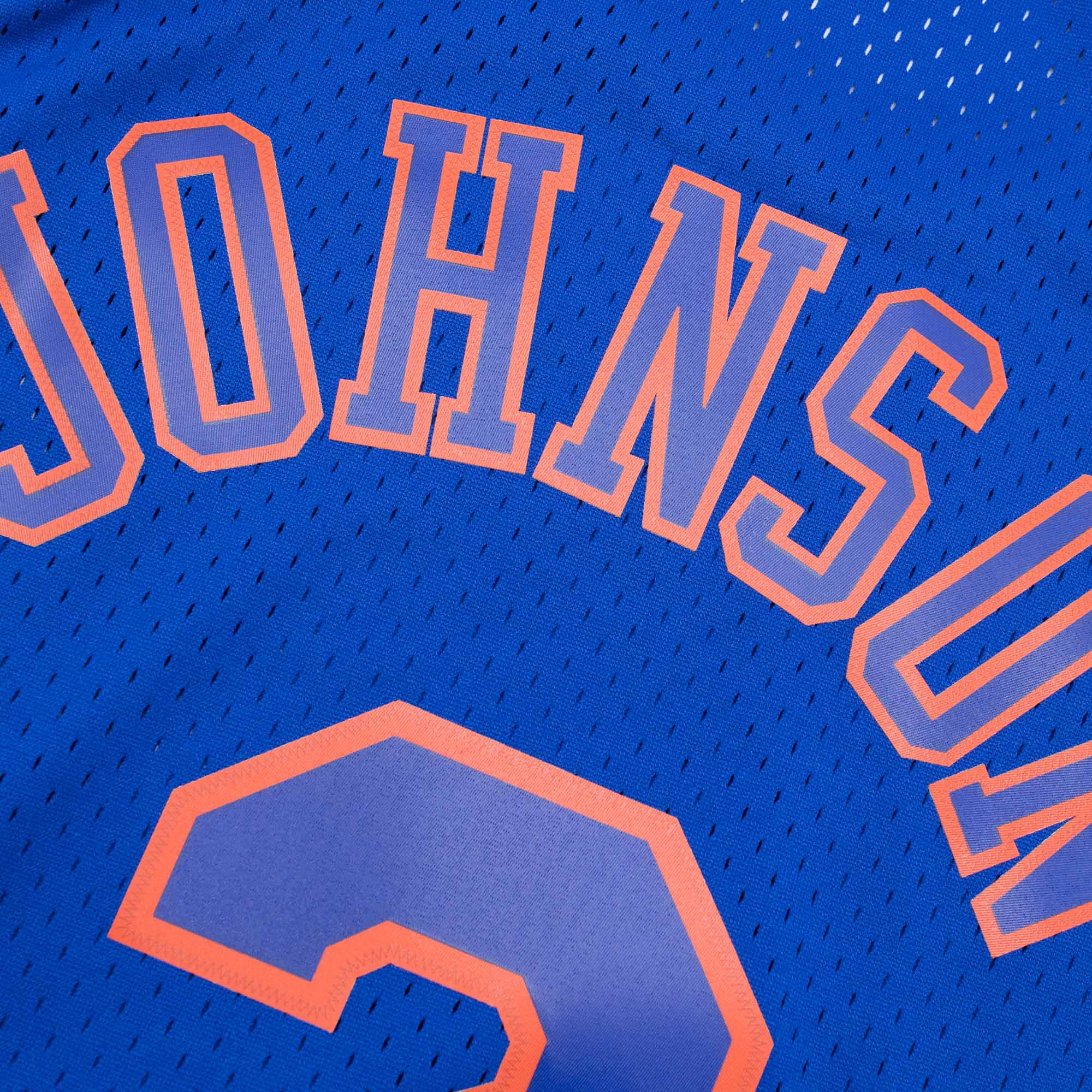 Rep your favorite team and player anytime in the NBA Swingman Hardwood Classics Jersey, replicating what the New York Knicks have worn on the court during that era. With heat seal screen printed twill logo, name and number applications. The body is made from 100% polyester mesh. Woven Hardwood Classics-Mitchell & Ness jocktag at front lower left.