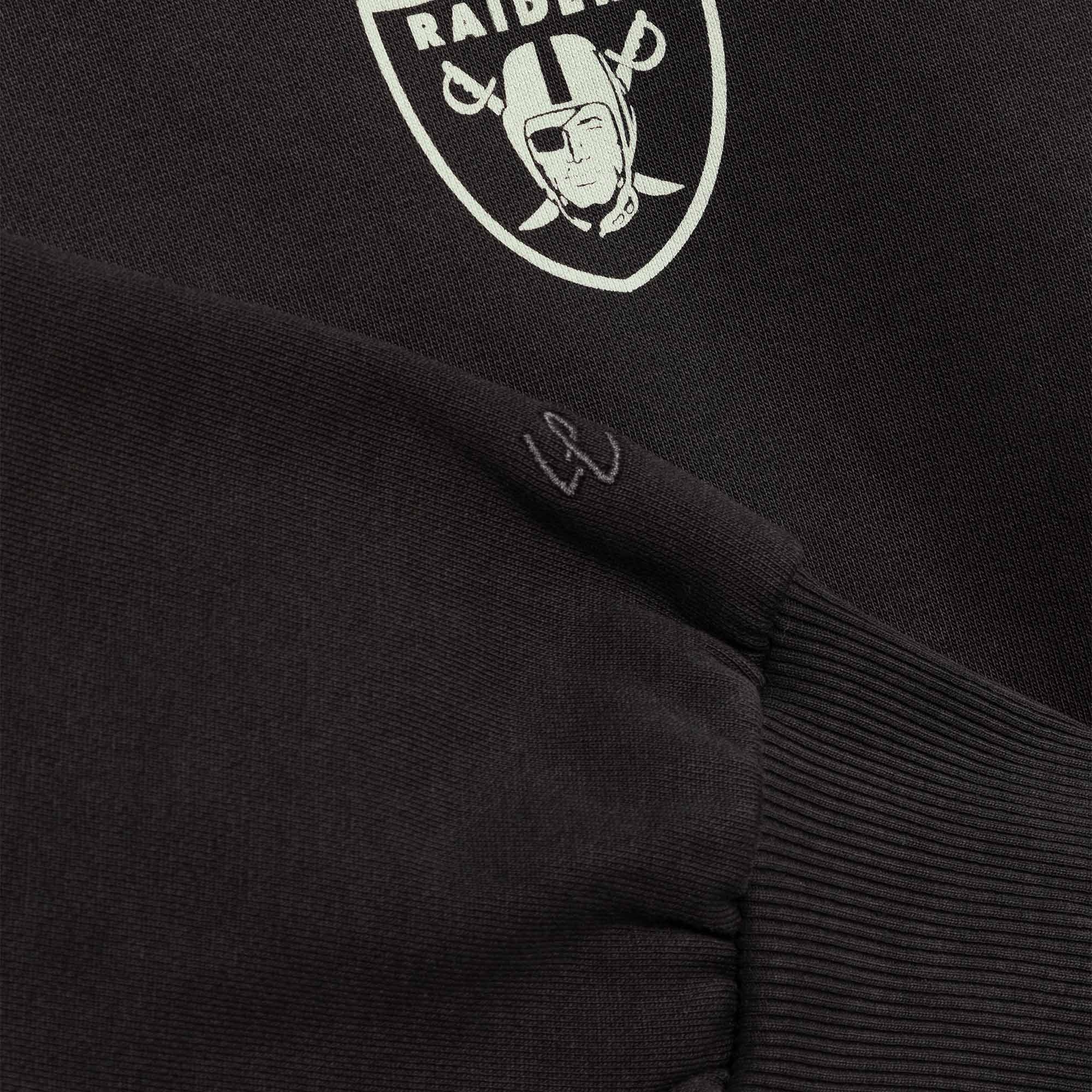 - Classic Raiders Style: The sweater features a large Las Vegas Raiders back print, complete with the classic team logo. A smaller version of the logo is also printed on the left chest for added detail.