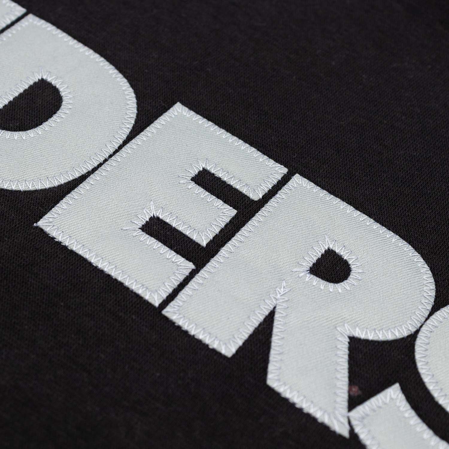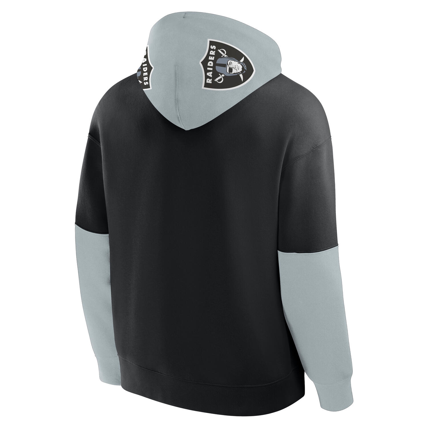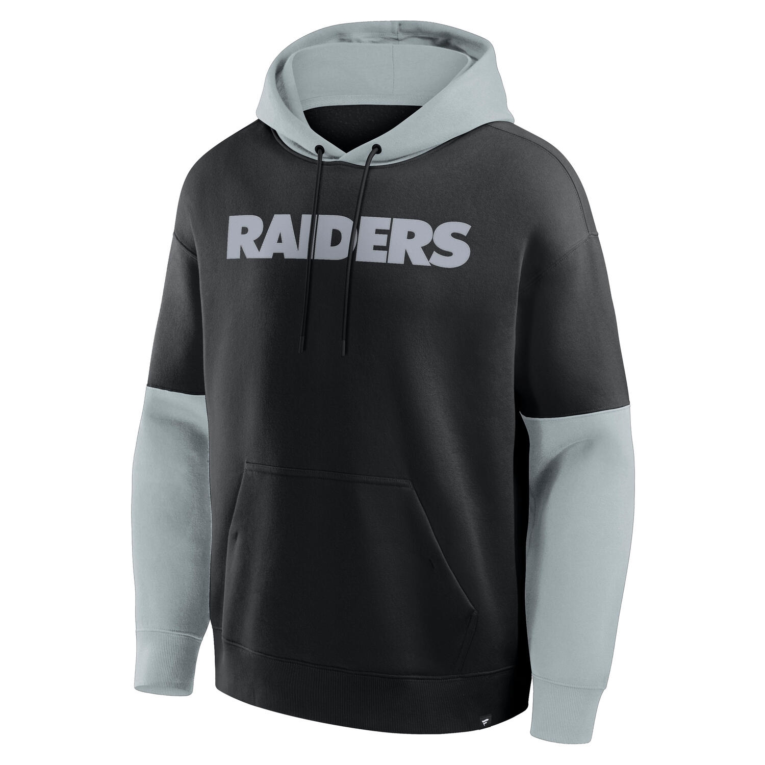 - Embroidered Raiders wordmark across the chest in bold gray