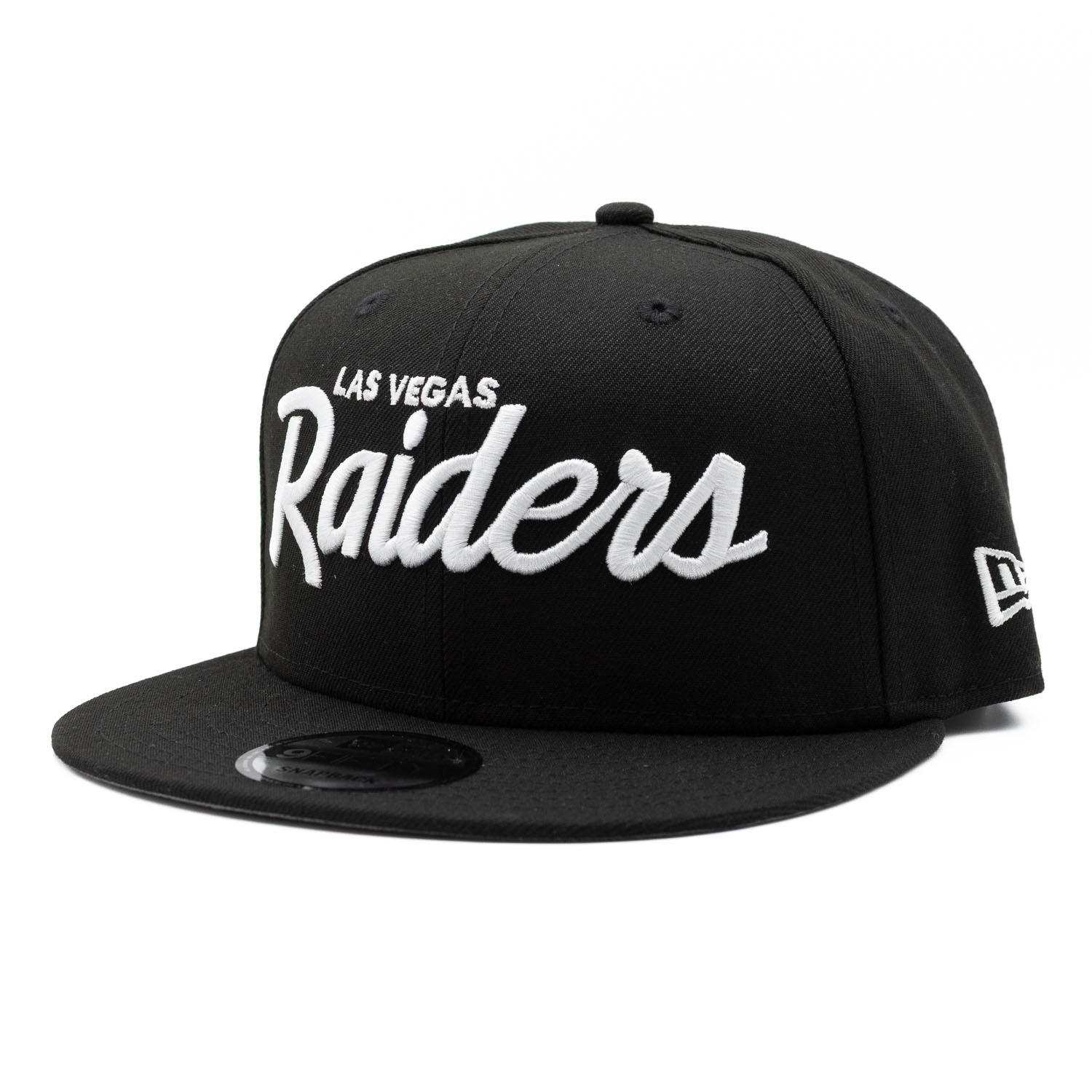 New Era NFL American Football 9FIFTY Snapback Hat featuring Script Las Vegas Raiders Logo.