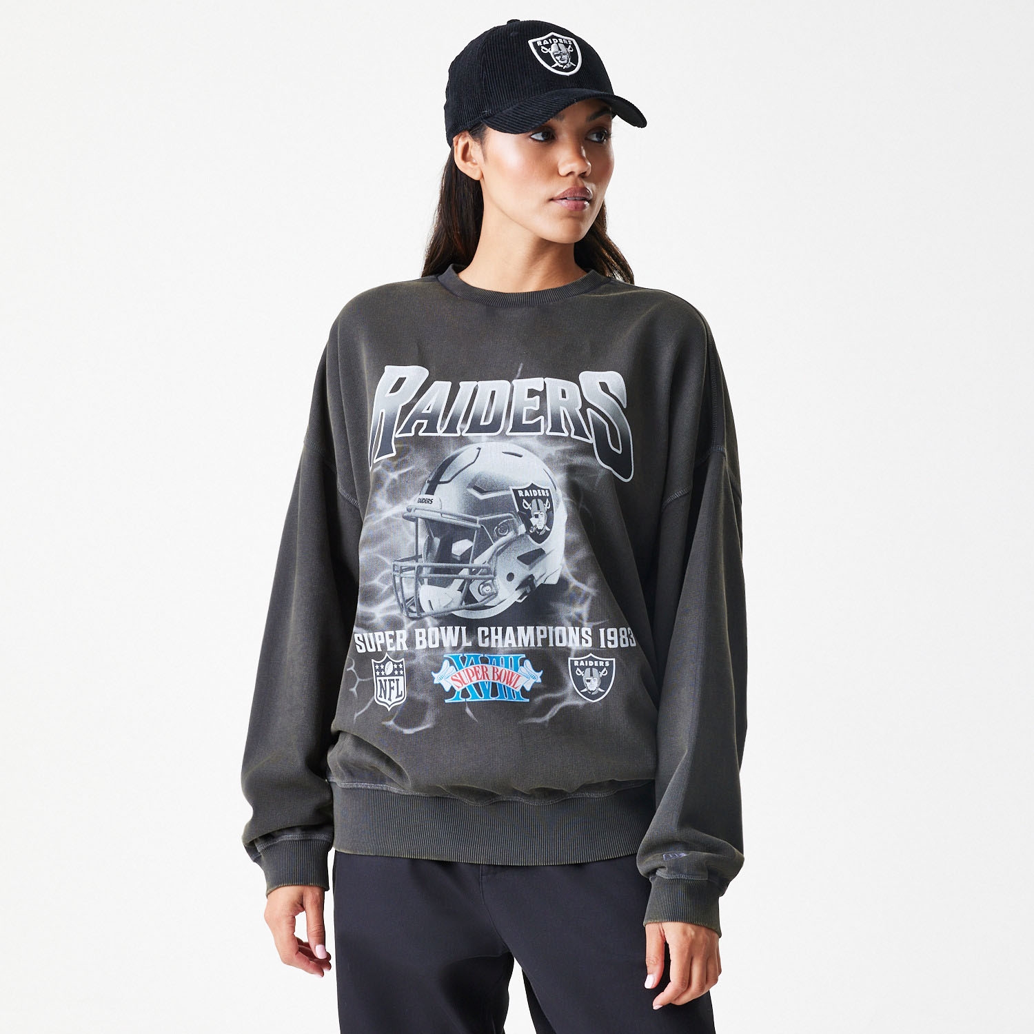 Las Vegas Raiders Washed Oversized NFL Crew Neck Sweater Dark Gray