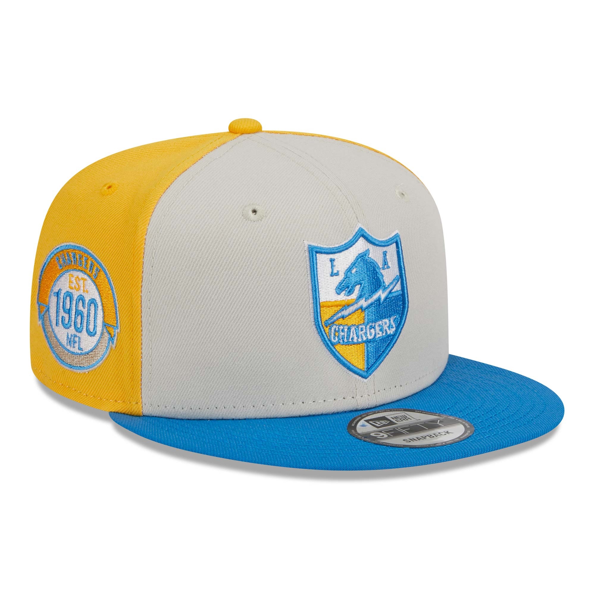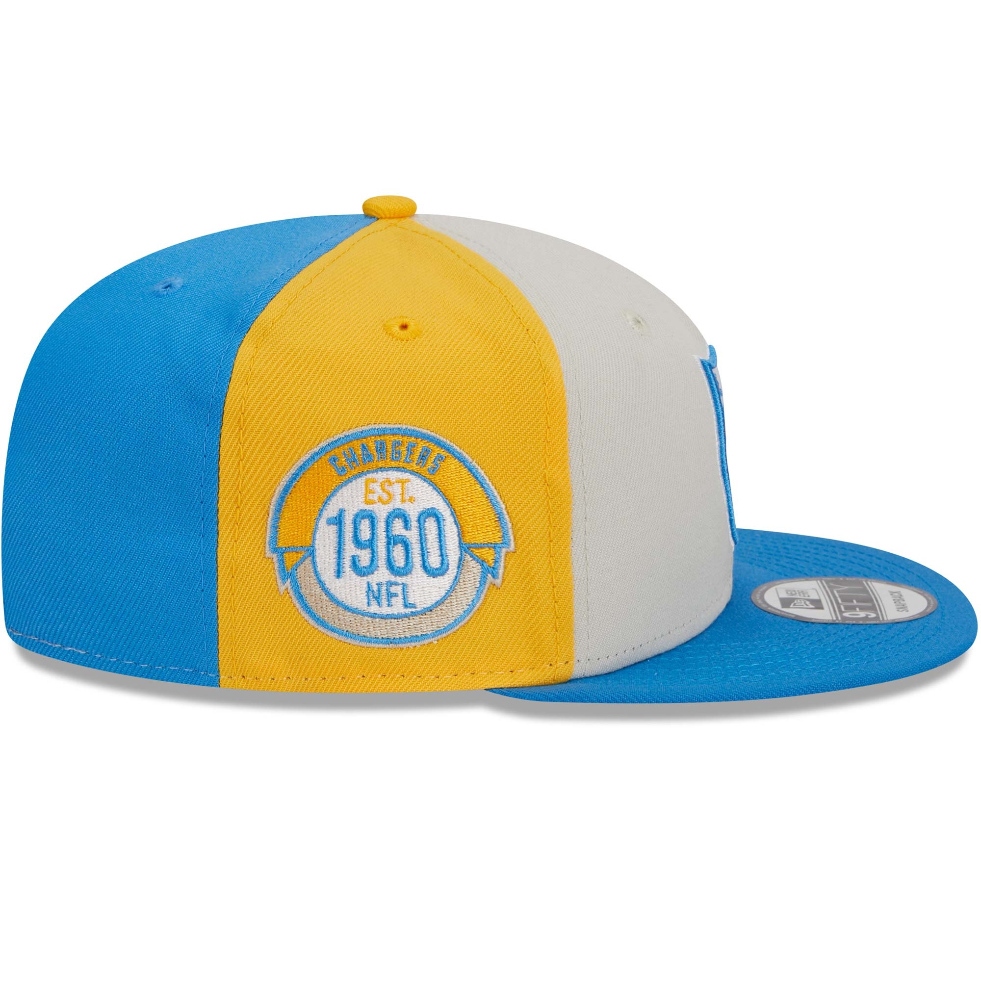 New Era Historic Throwback 2023 On Field NFL Sideline 9FIFTY Snapback Adjustable American Football Hat from your Los Angeles Chargers.