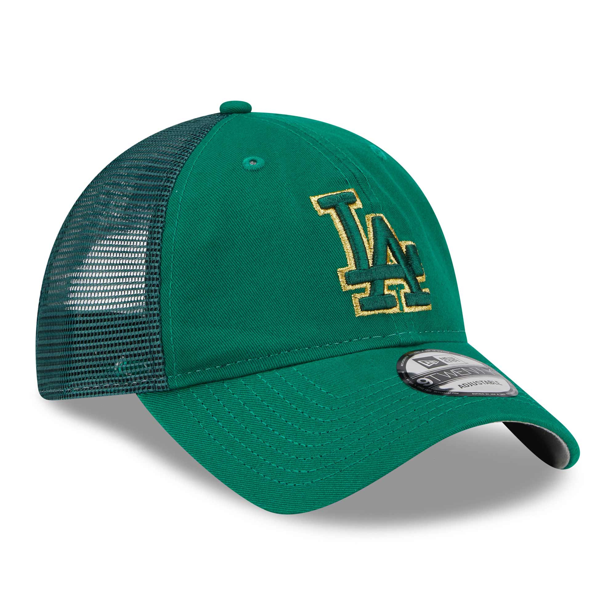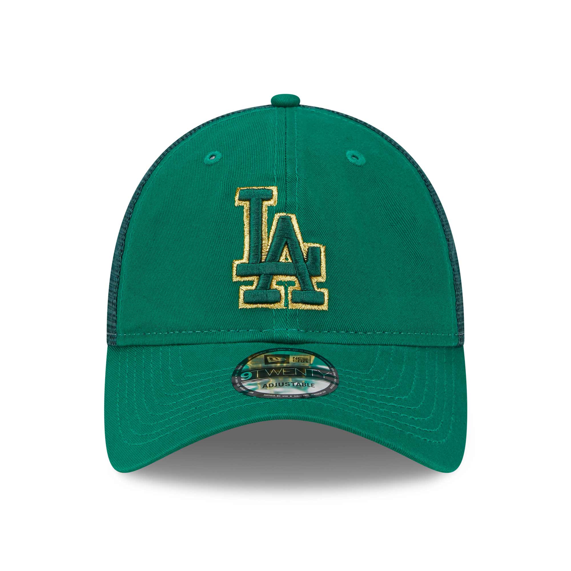 This official MLB hat is a must-have for any baseball fan and a great accessory for your St. Paddy's Party. The adjustable cap features golden-green Los Angeles Dodgers team logo on front. Classic green trucker mesh back helps you keep a cool head no matter the play. Gray undervisor.