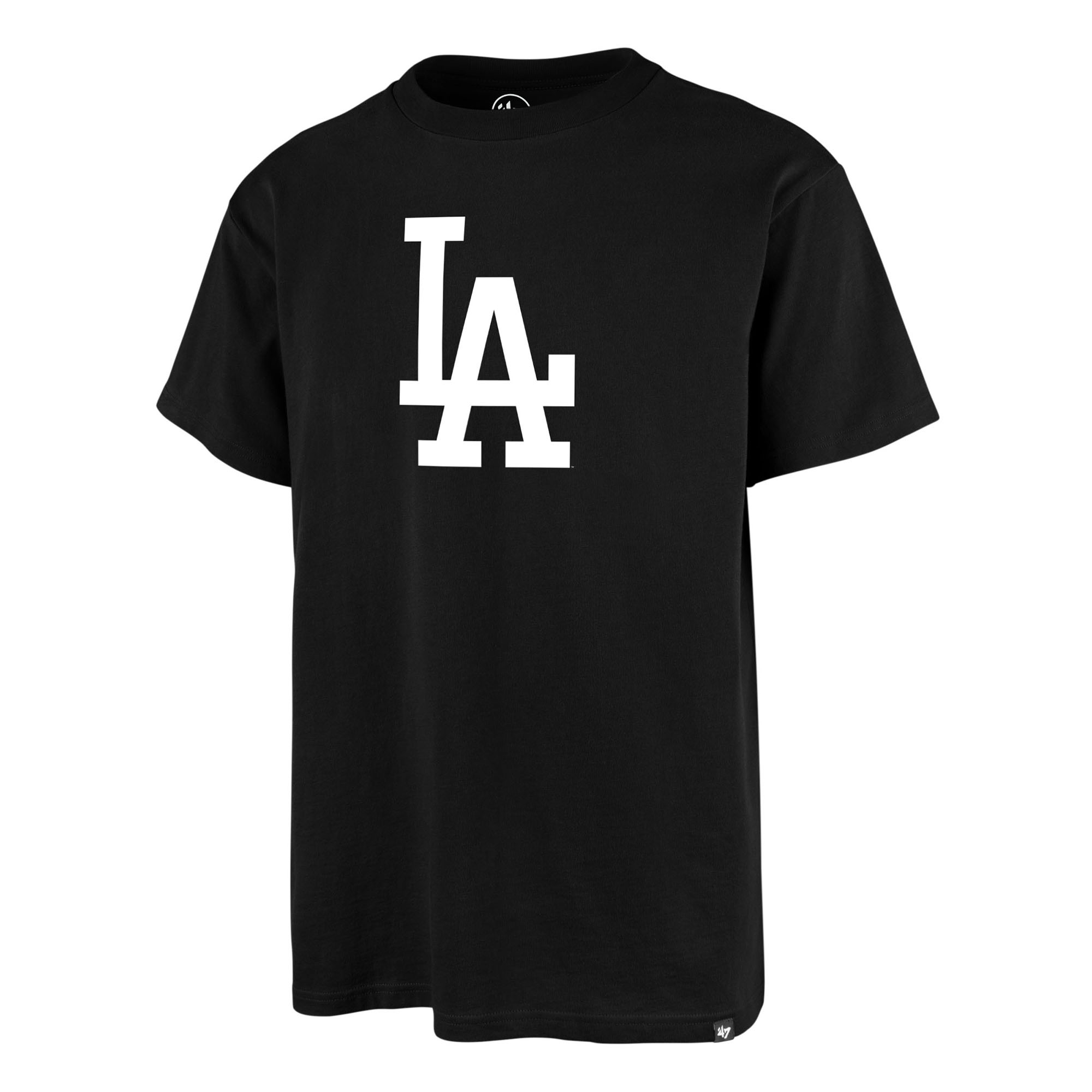 '47 MLB Men's Echo Black and White Back Logo Baseball T-Shirt from your Los Angeles Dodgers.