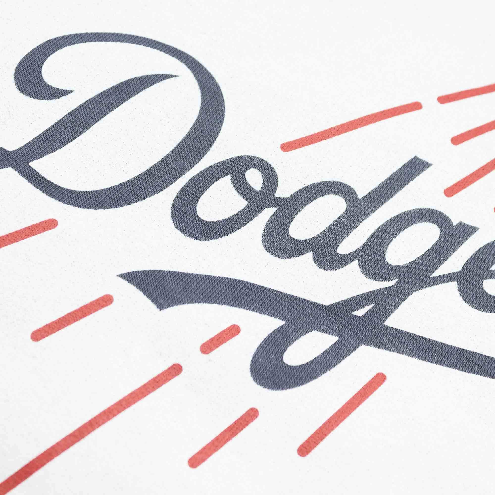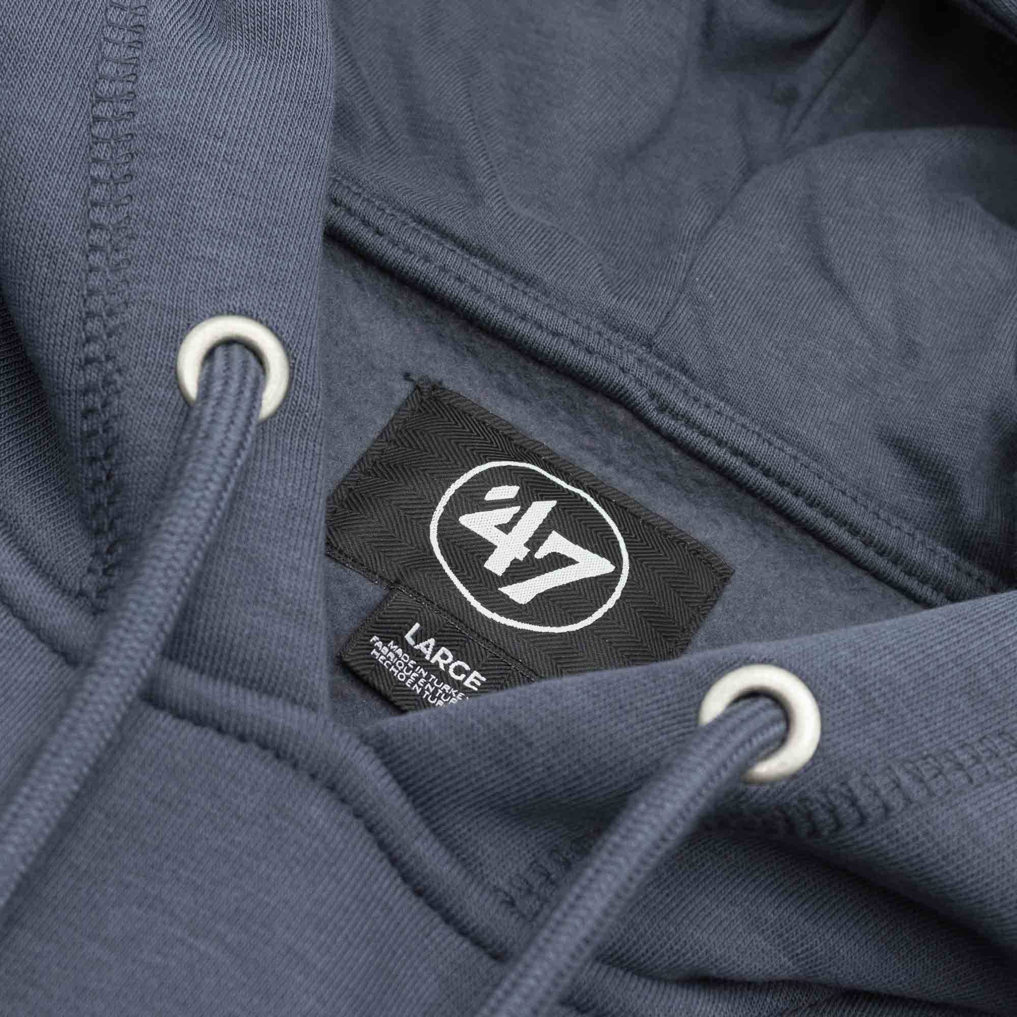 The '47 Burnside MLB pullover hoodie is made from a heavy 320 GSM poly cotton fabric with a cozy brushed fleece interior. Heavy ribbed details at the cuffs. LA Dodgers team logo print on front and classic team logo on back.