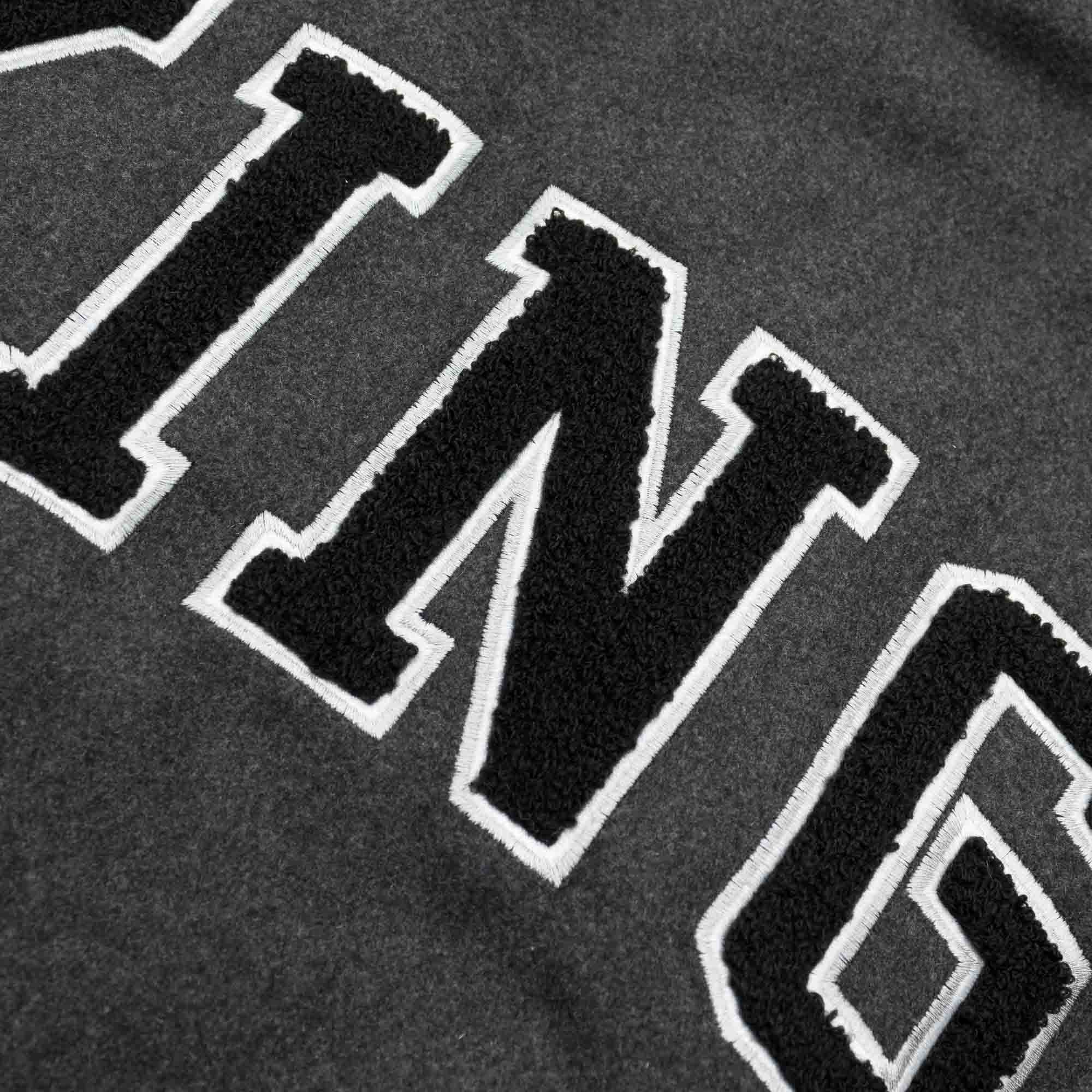 The high-quality Wool Varsity Jacket from Starter is something very special for every NHL fan. The black wool design with black faux leather sleeves is combined with a zip-button front. The heavy jacket only comes with high-quality embroidered team applications. The left chest is embroidered with the Los Angeles Kings team logo in chenille style. The back is decorated with the large KINGS Chenille wordmark. In addition, the right sleeve is also embroidered with the Los Angeles Kings team logo.