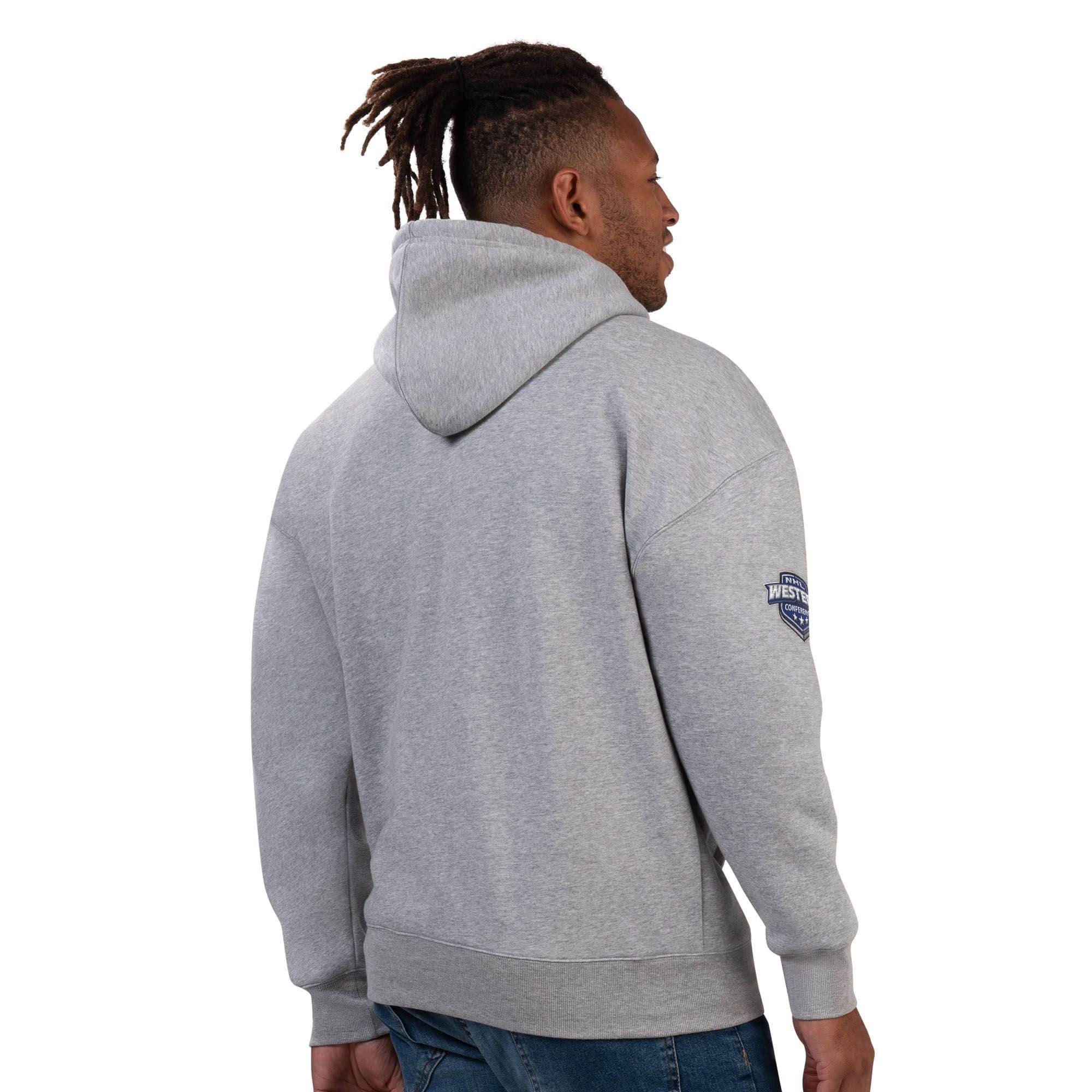 This Starter premium fleece hoodie offers high quality workmanship combined with a gray team design. Attached hood, front pocket and soft cotton-polyester fleece ensure a comfortable fit. The legendary Starter look is rounded off with the embroidered Star logo on the sleeve hem.