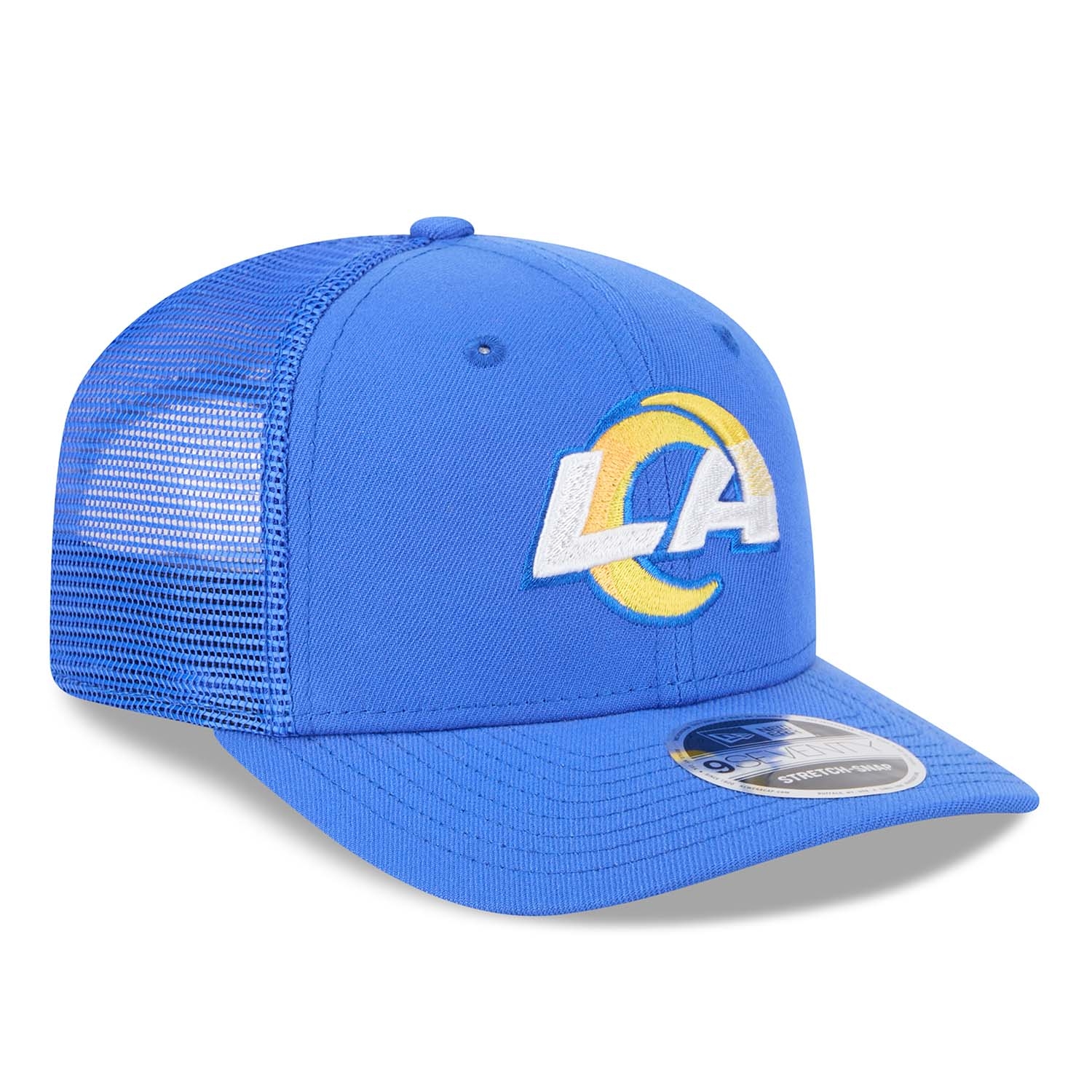 New Era NFL Team Stretch-Snap 9SEVENTY Trucker Hat from your Los Angeles Rams.