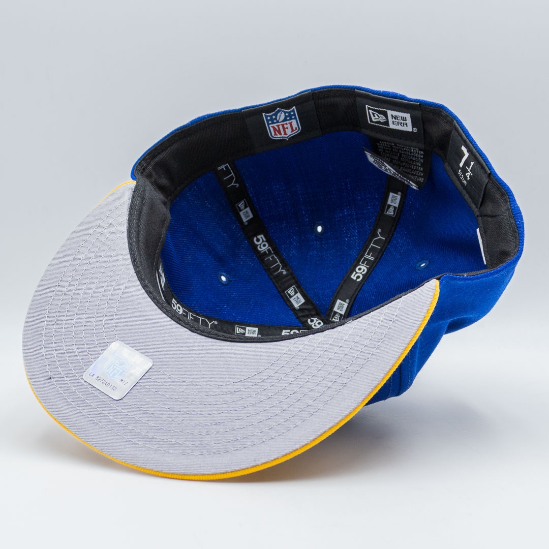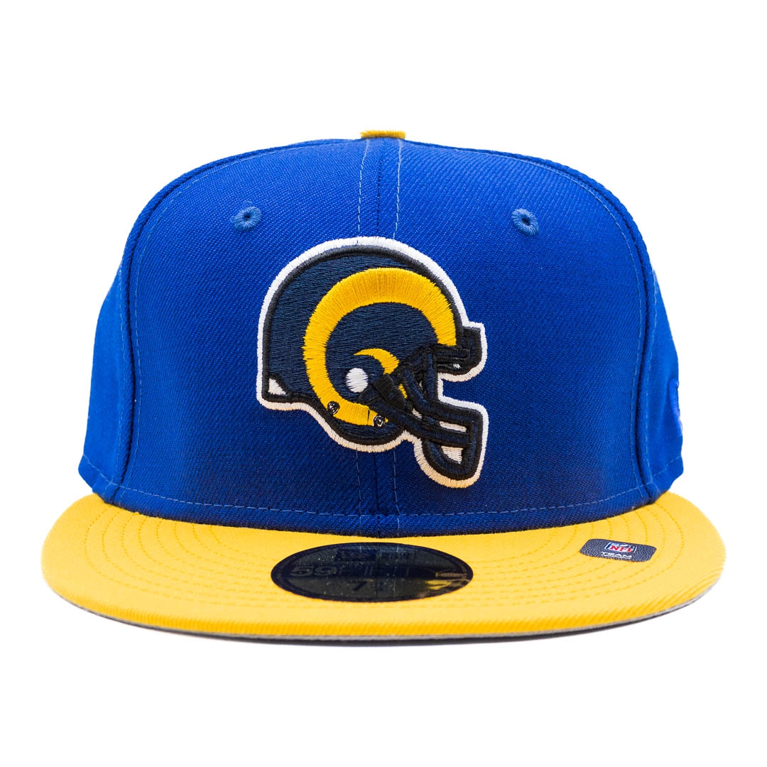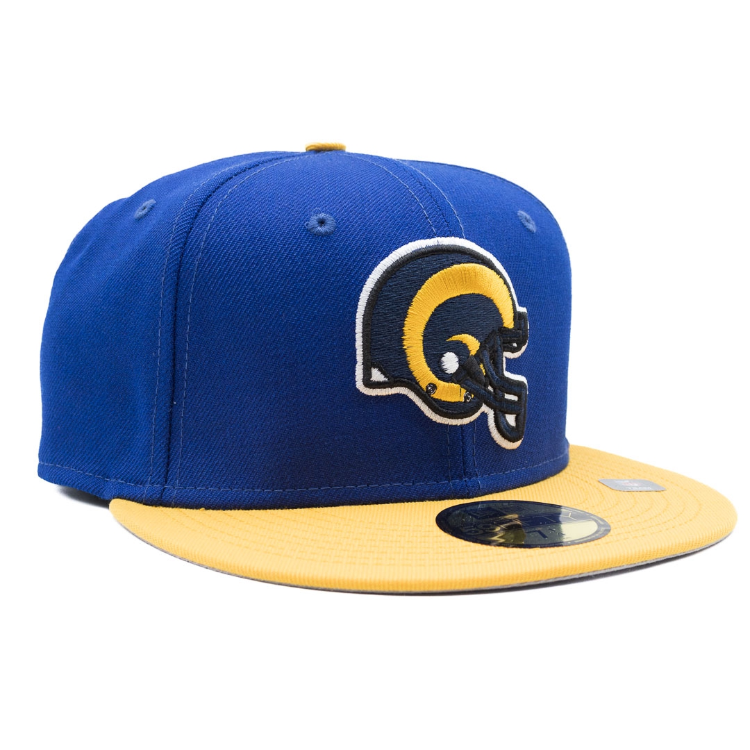 New Era Throwback American Football 59FIFTY Fitted Hat featuring the classic LA Rams Team Logo (1989-94).