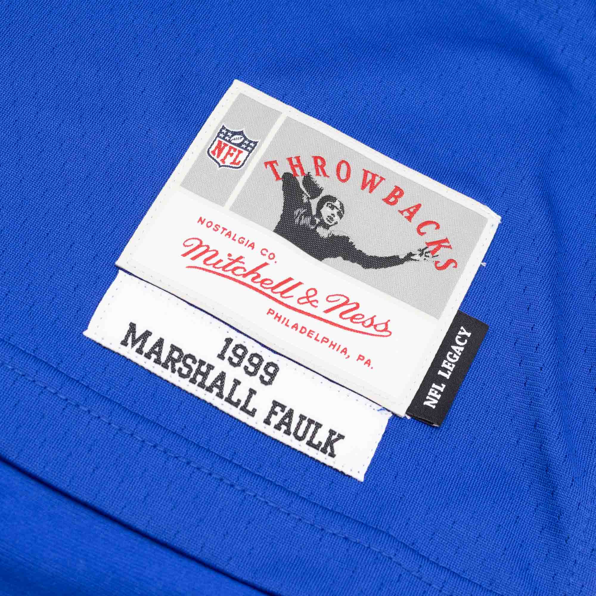 NFL Men's Legacy Throwback American Football Jersey from Marshall Faulk, Running Back for the St. Louis Rams (1995-2005) 28 by Mitchell & Ness.