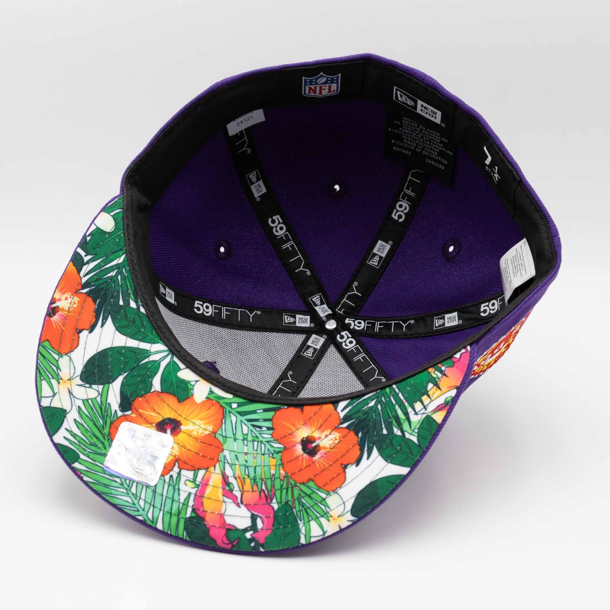 This Pro Bowl Hawaii premium quality New Era Cap is part of the TAASS.com Exclusives Collection. With Miami Dolphins team logo embroidered on front and 1983 Pro Bowl Hawaii patch on right cap panel. NFL shield logo on back. The undervisor hast a floral design.