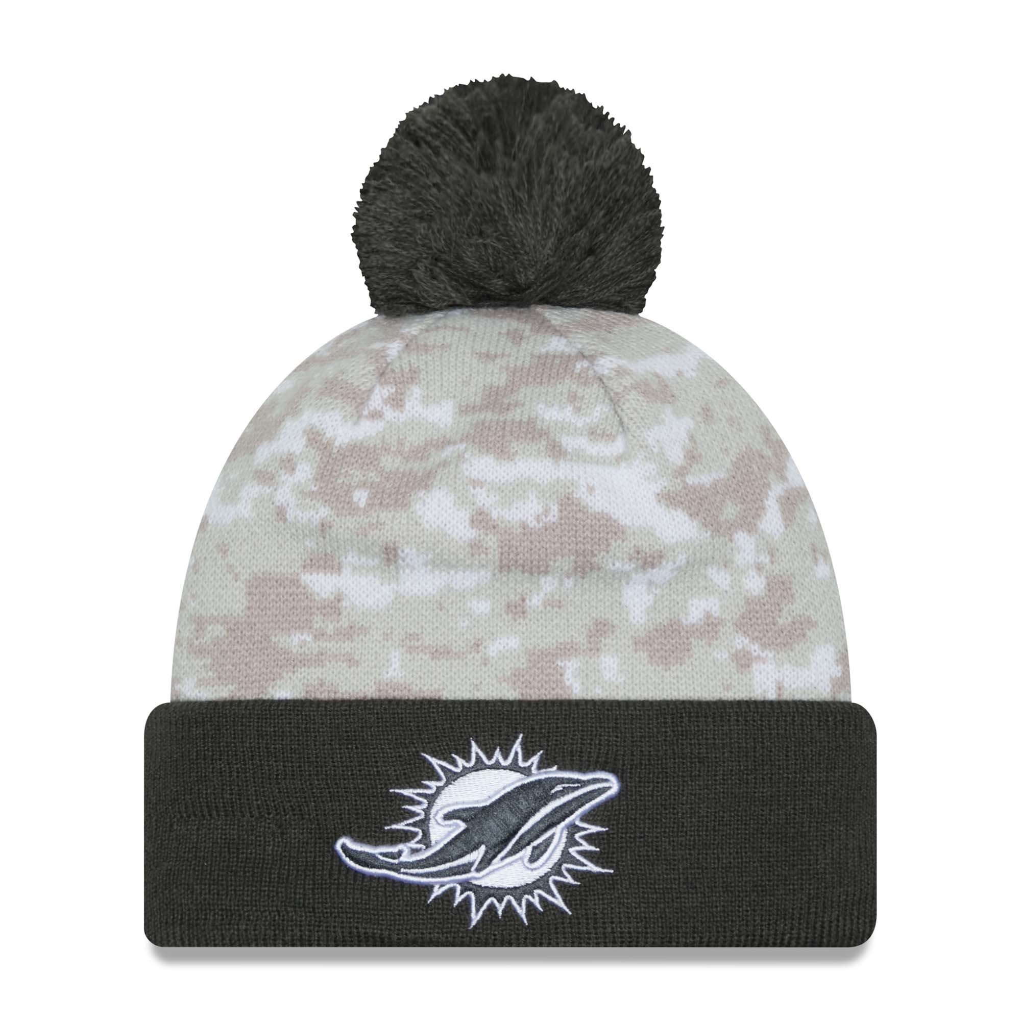 New Era On-Field 2024 NFL Salute to Service Edition American Football Pom Knit Hat from your Miami Dolphins.