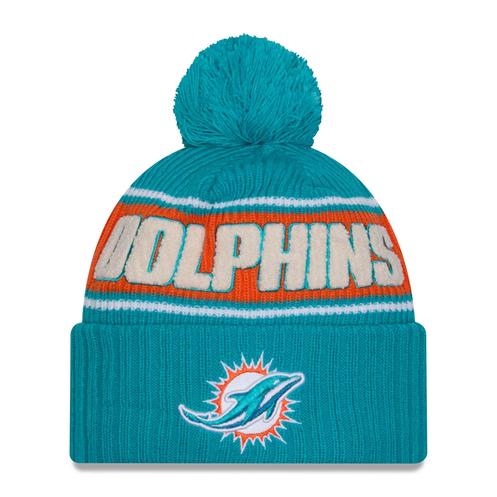 New Era American Football Knit Hat with Pom from your Miami Dolphins.
