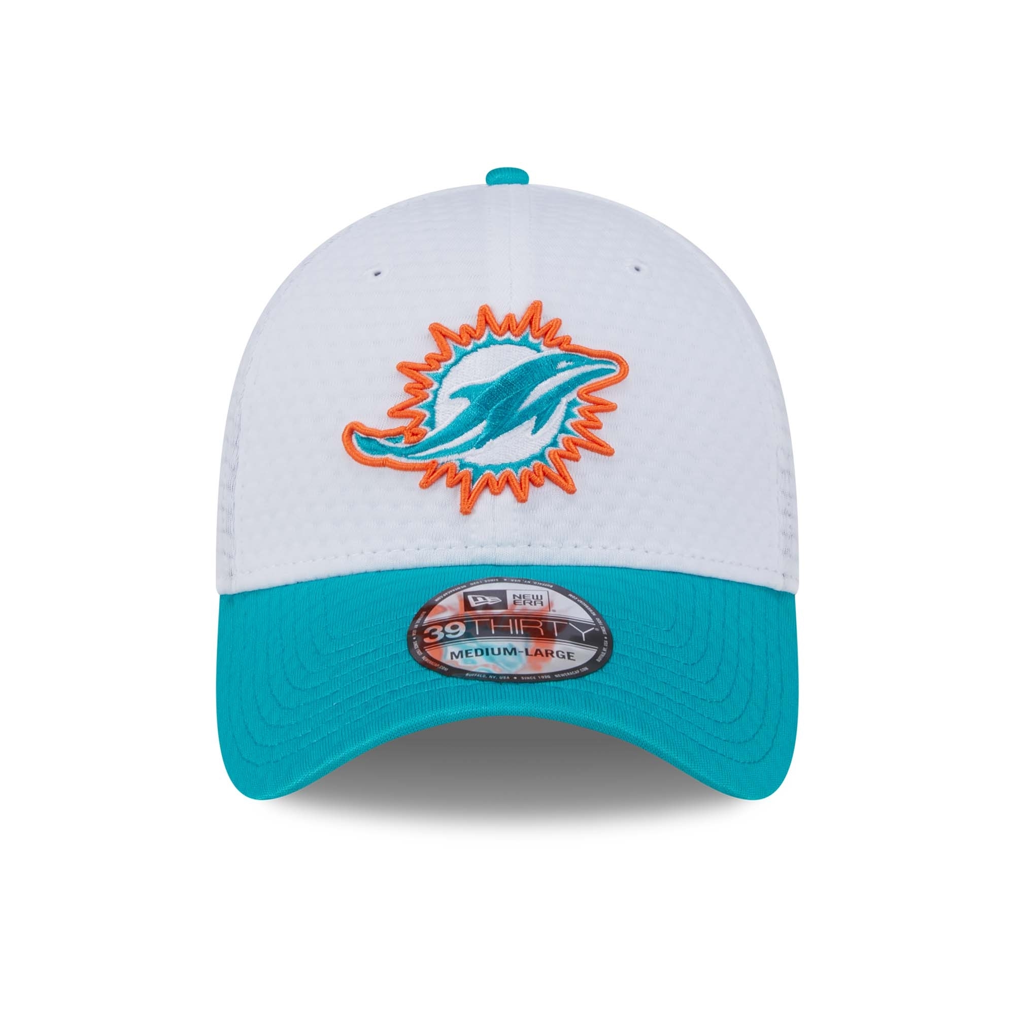 New Era Official 2024 NFL Training Camp Collection Stretch-Fit 39THIRTY American Football Hat from your Miami Dolphins.