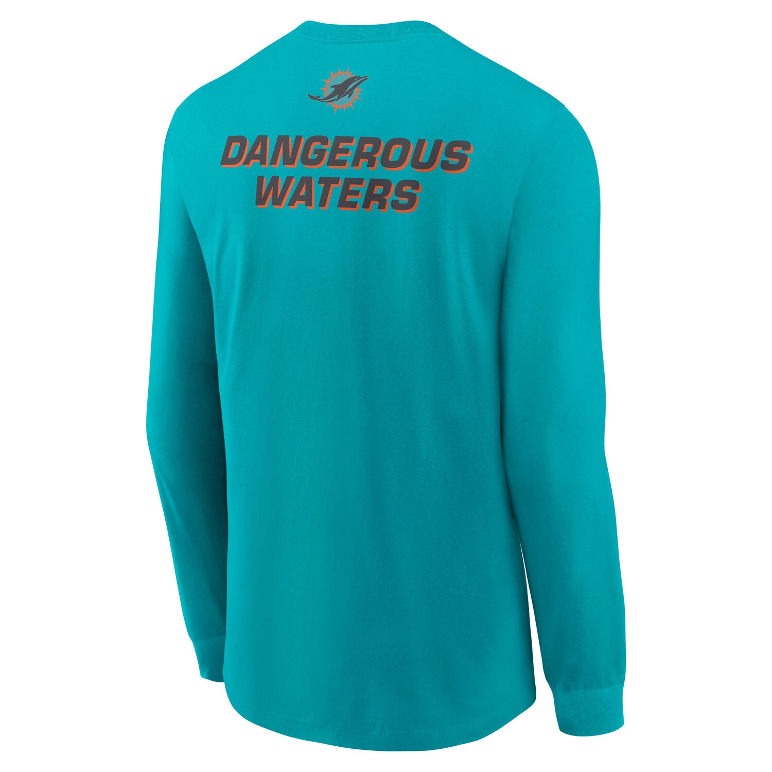 Show your loyalty to the Dolphins with the Nike Miami Dolphins Essential Long Sleeve from the 2025 Rivalries Collection! A "MIAMI DOLPHINS" wordmark on the chest delivers a clean look, while the bold "DANGEROUS WATERS" back print proudly highlights your fan identity. Crafted from soft cotton jersey, this shirt provides all-day comfort - perfect for game day or everyday wear.