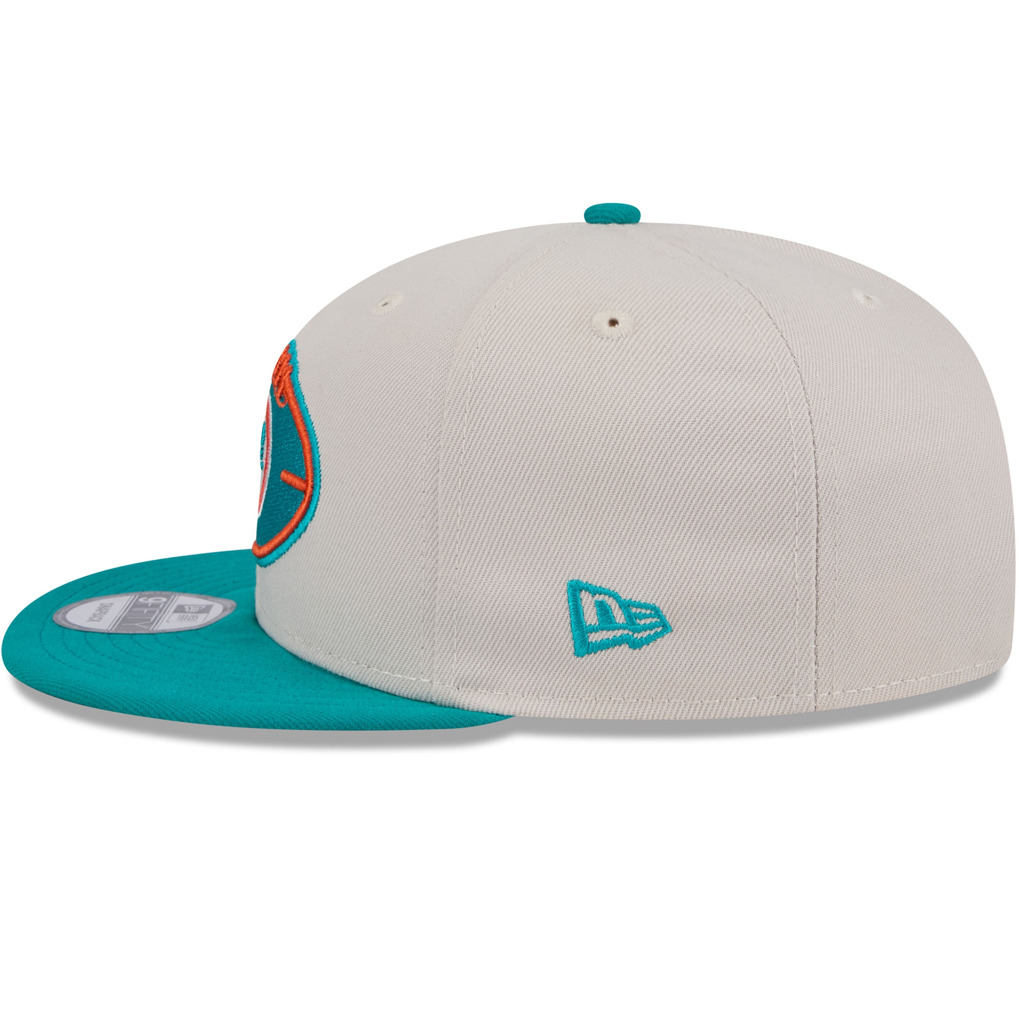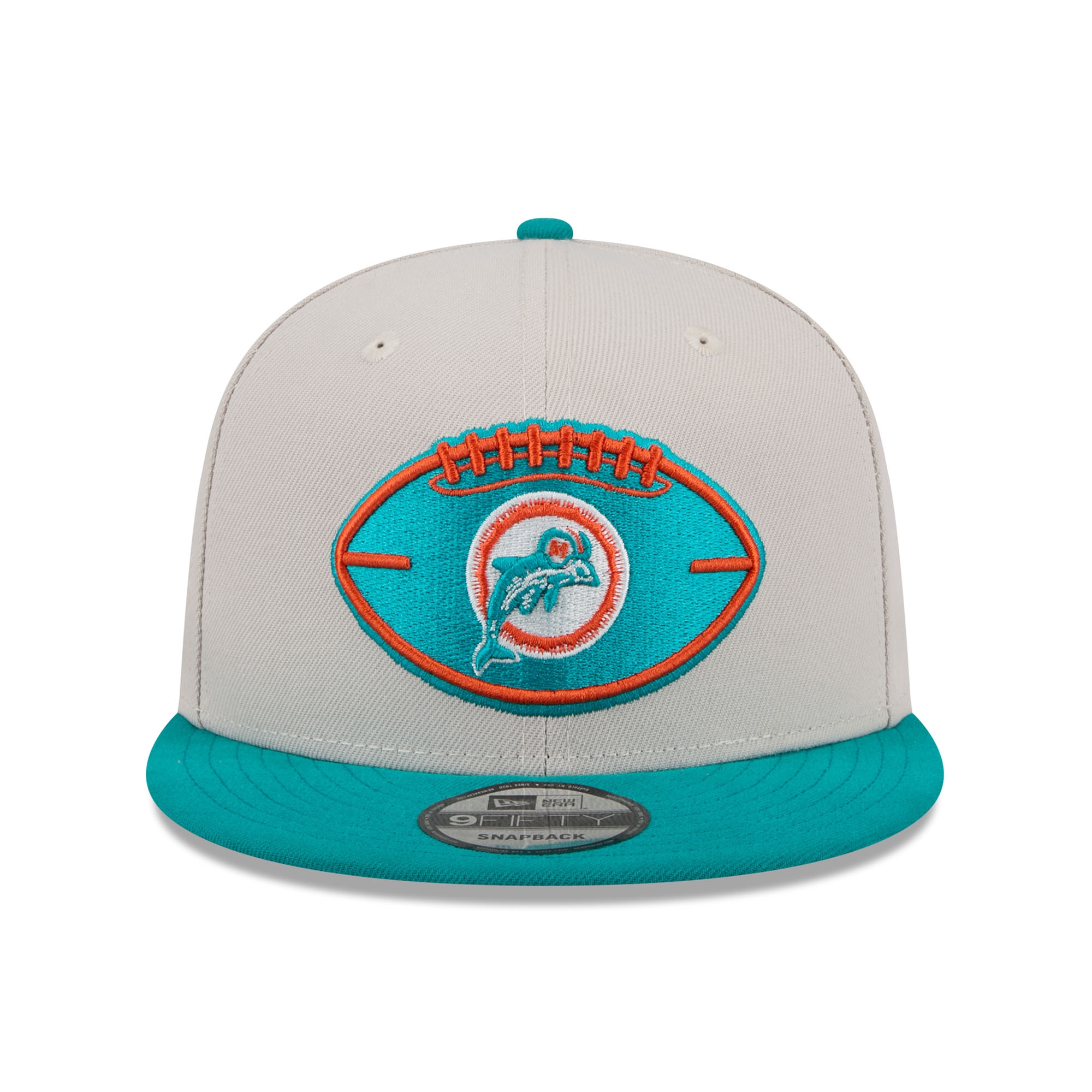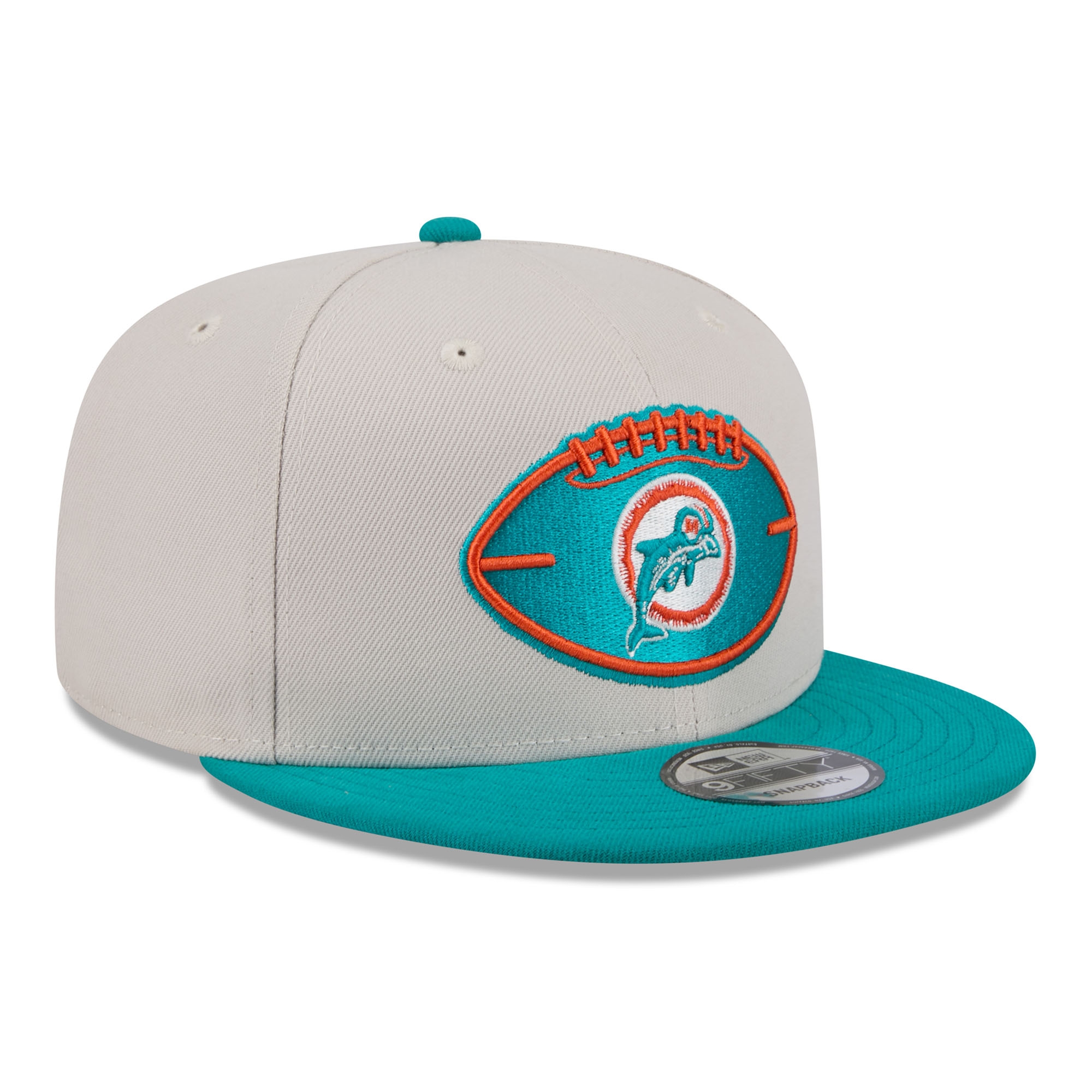 New Era Classic Throwback On-Field 2024 NFL Sideline Edition American Football 9FIFTY Adjustable Snapback Cap from your Miami Dolphins.