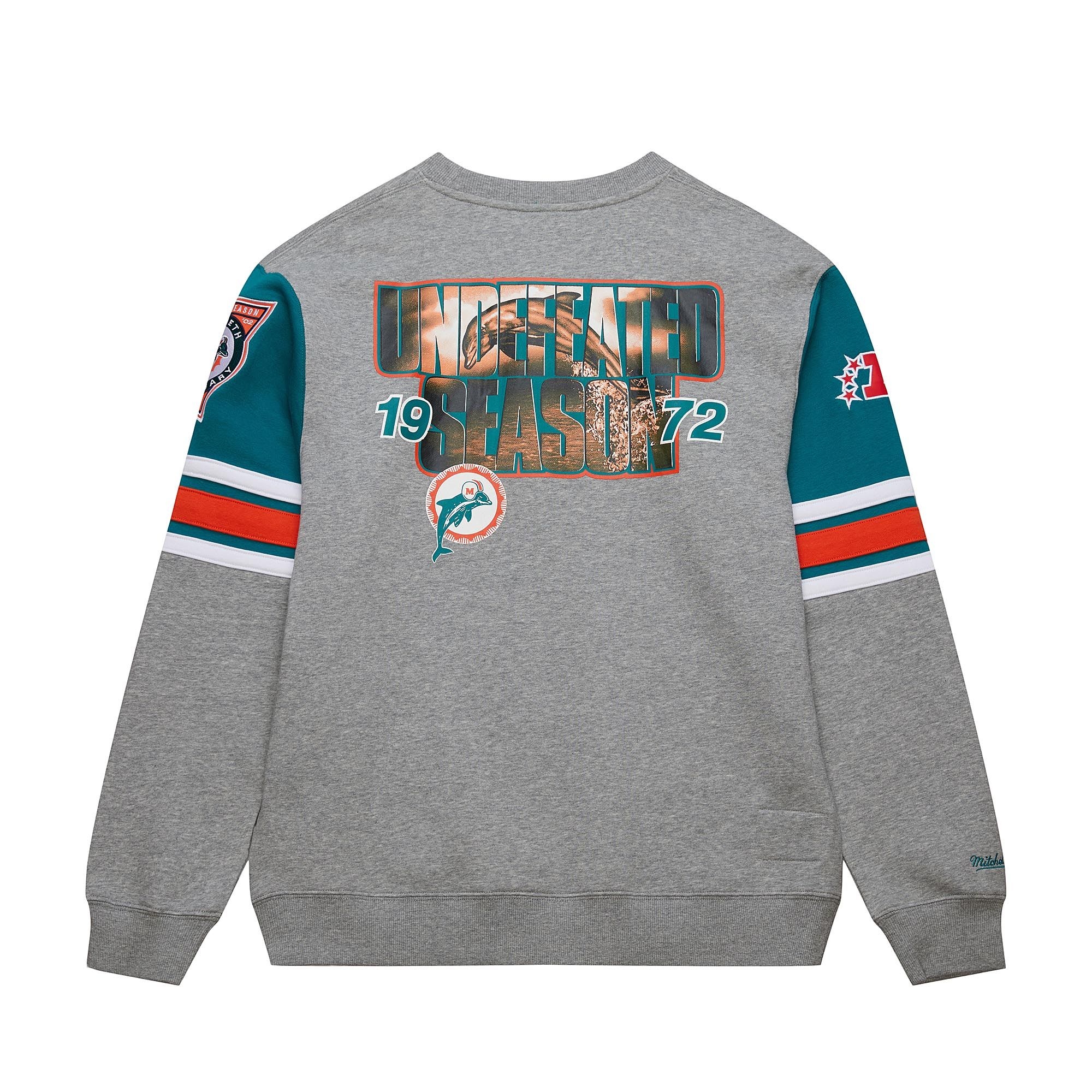Miami Dolphins Mitchell & Ness All Over Crew 4.0 NFL Pullover Gray