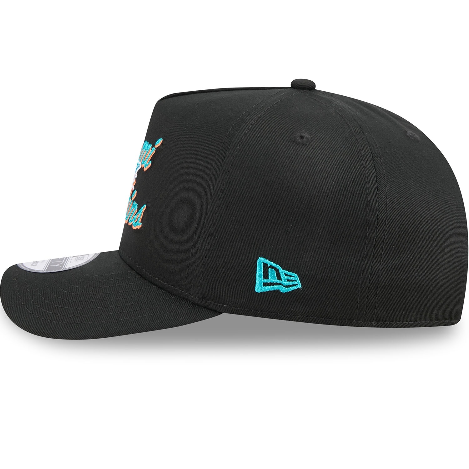 This New Era 9FIFTY A-Frame Cap combines bold chainstitch detailing with the authentic team look of the Miami Dolphins. The front features the Dolphins logo, complemented by eye-catching chainstitched lettering that gives the cap its distinctive style. The high, structured A-frame crown provides a clean silhouette, while the pre-curved visor adds a sporty finish.