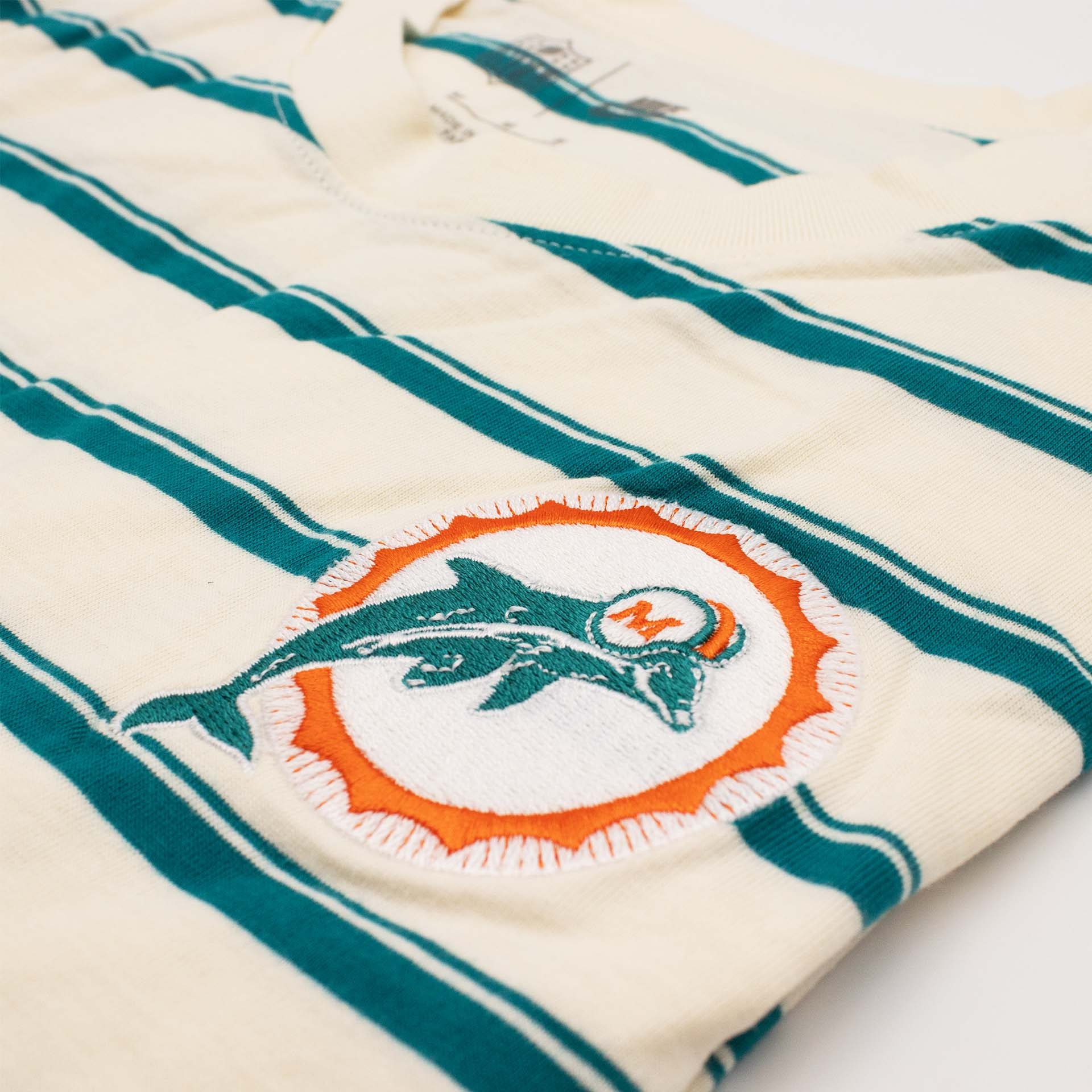 - Embroidered Miami Dolphins team logo as a bold statement