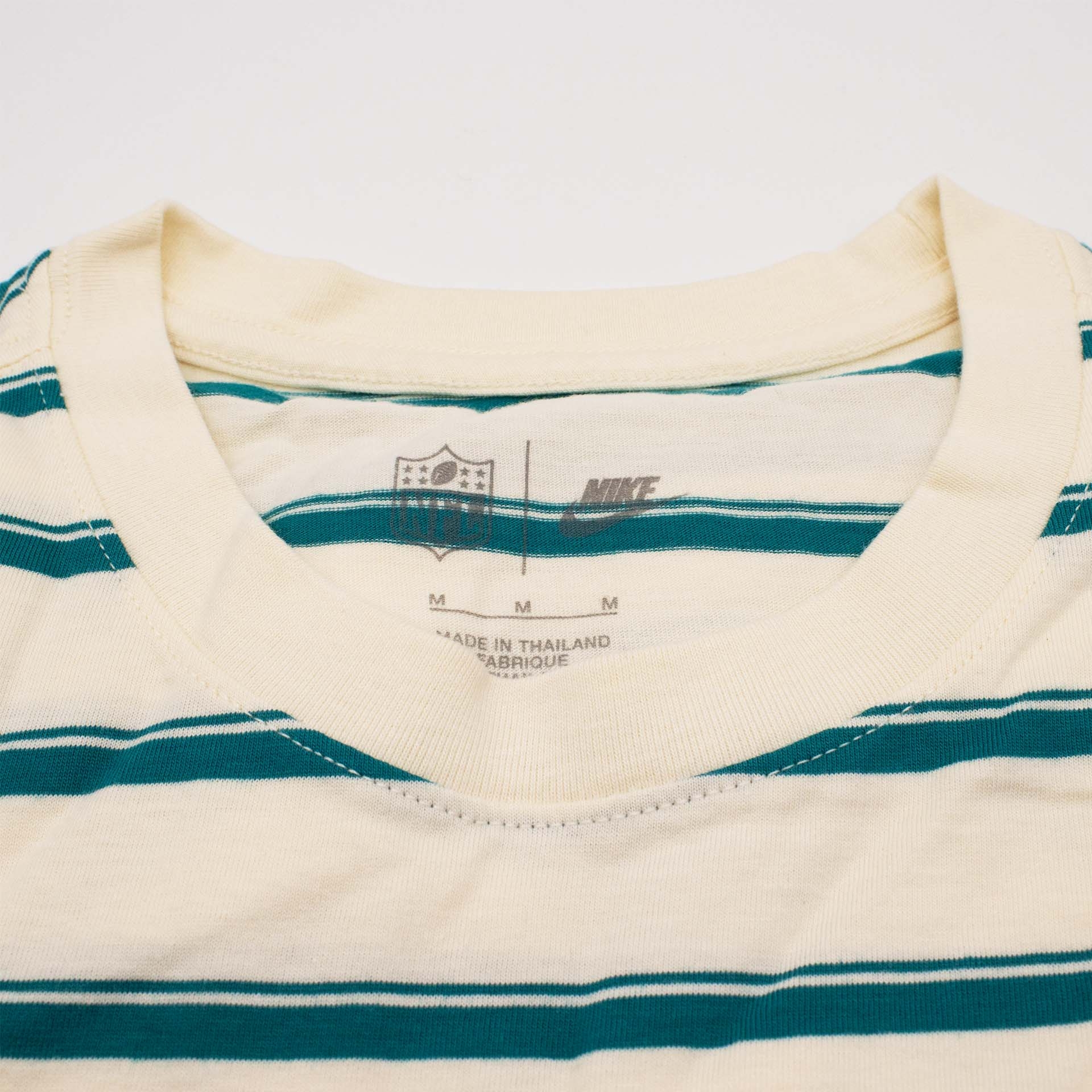 This Nike NFL Club T-Shirt from the Miami Dolphins brings back the spirit of classic football eras and translates it into a modern streetwear look. The bold striped design delivers true throwback character, while premium embroidered details add an authentic, high-quality finish.
