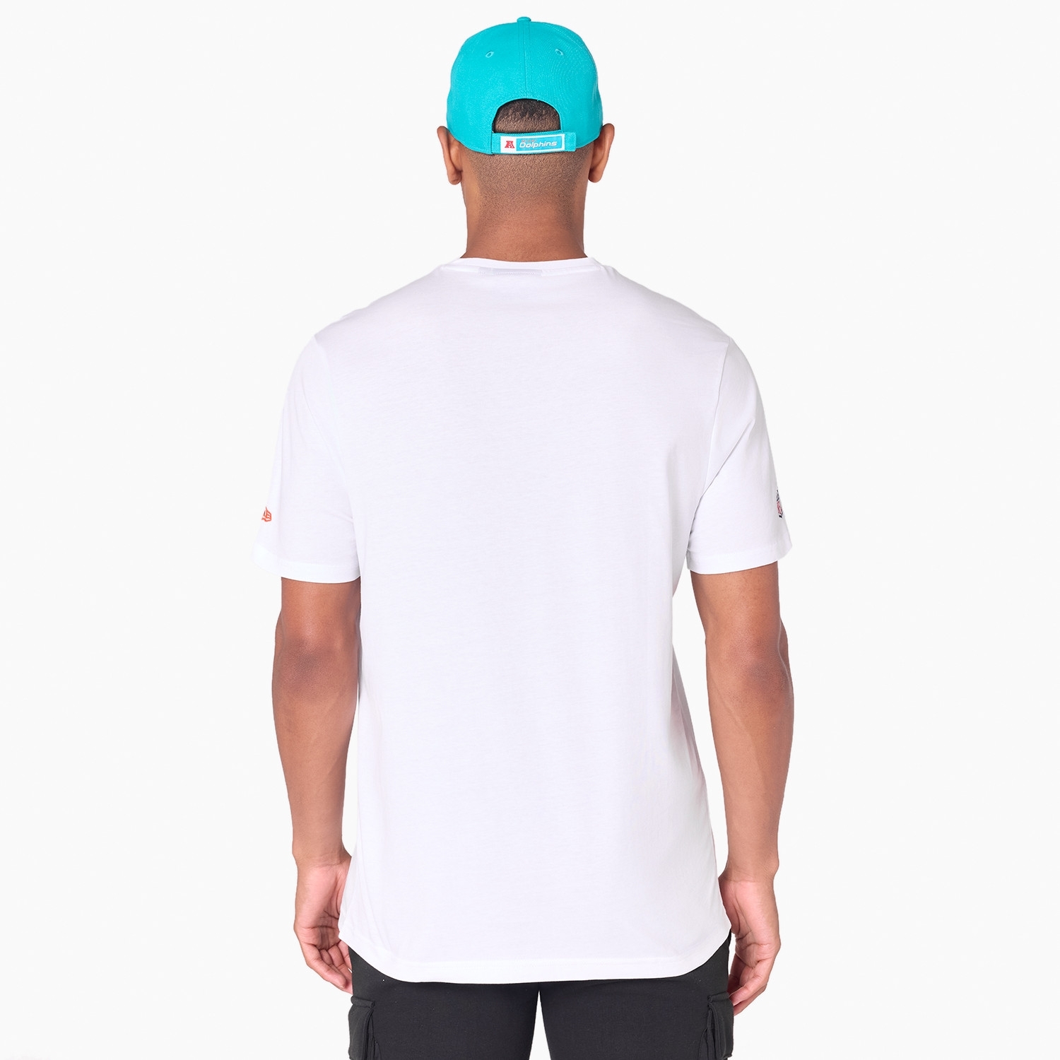 New Era American Football T-Shirt from the Miami Dolphins with large Team Logo print on front.