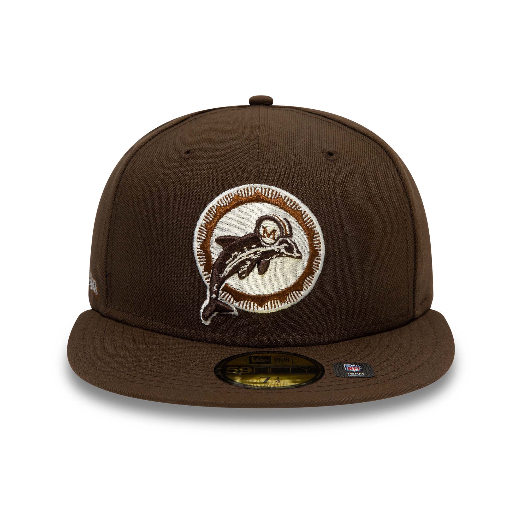 New Era NFL American Football Walnut 59FIFTY Fitted Hat from your Miami Dolphins with Super Bowl VII Side Patch.