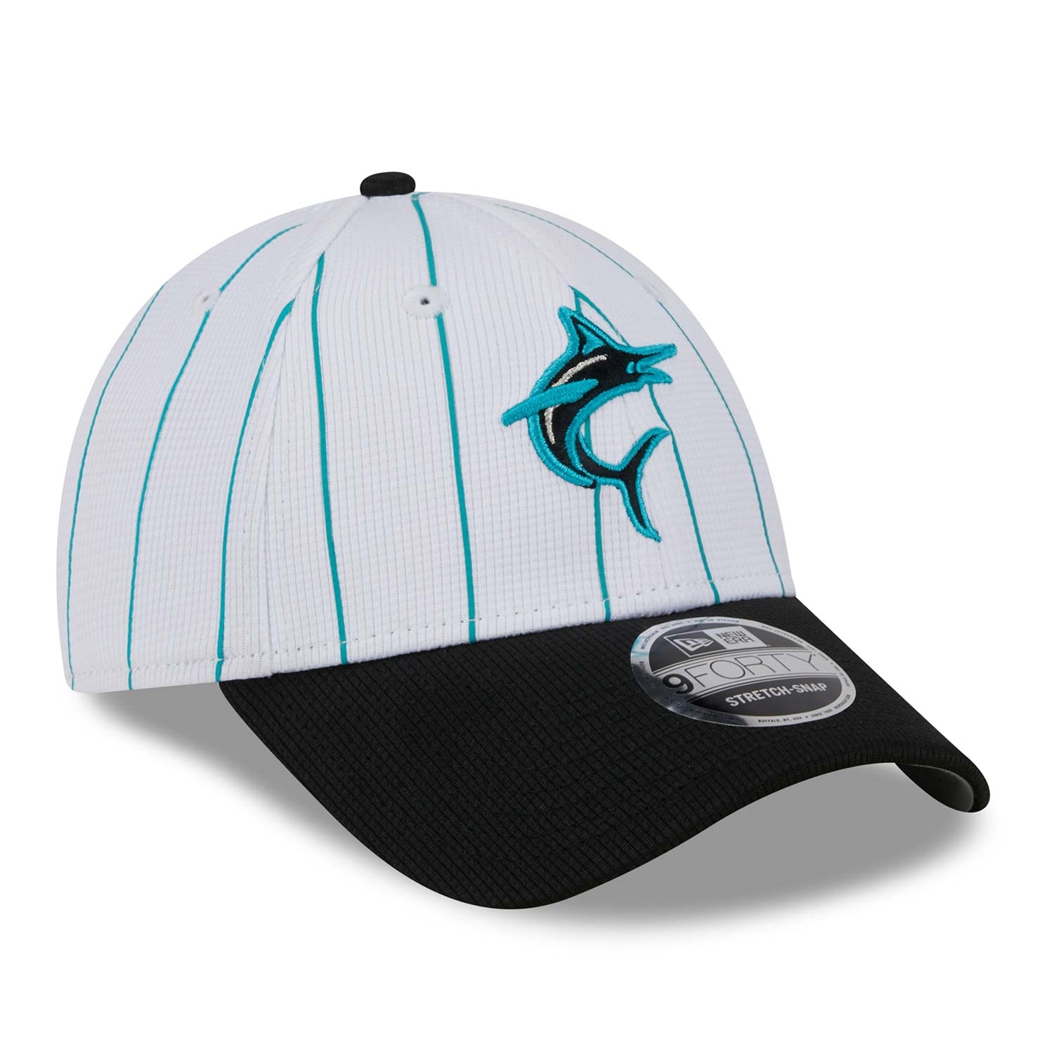New Era MLB Official 2025 Batting Practice Collection Stretch-Snap 9FORTY Adjustable Baseball Hat from your Miami Marlins.