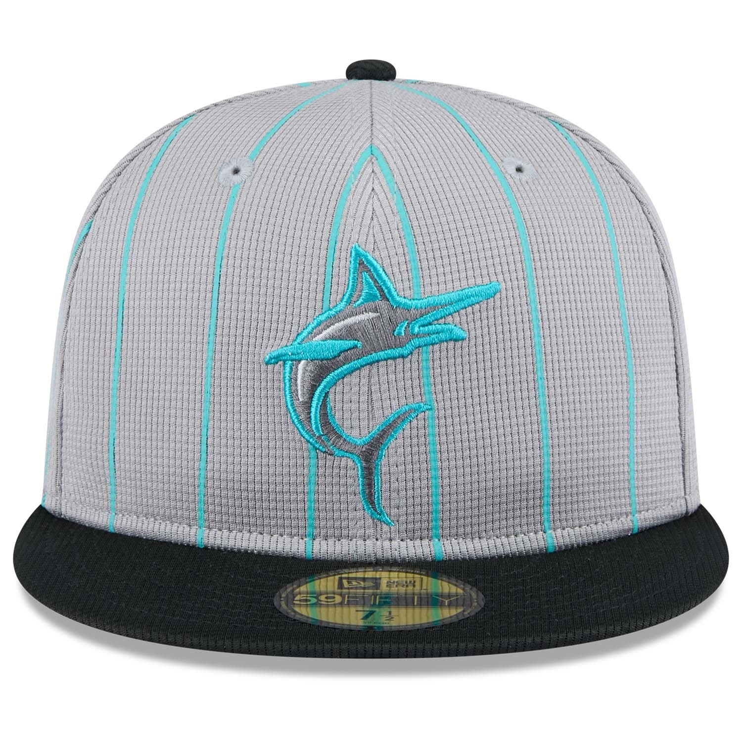New Era MLB Gray Colorway 2025 Batting Practice Collection 59FIFTY Fitted Baseball Hat from your Miami Marlins.