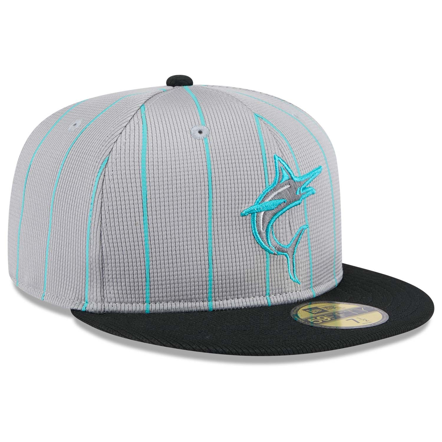New Era MLB Gray Colorway 2025 Batting Practice Collection 59FIFTY Fitted Baseball Hat from your Miami Marlins.