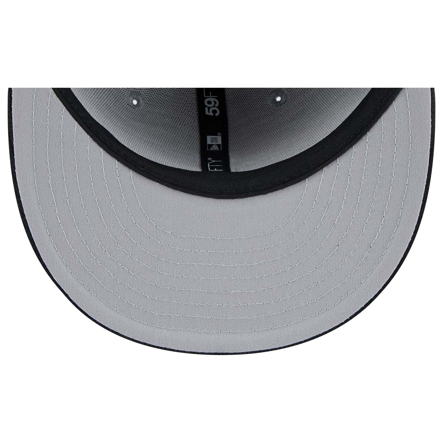 Classic 59FIFTY fit with a high structured crown and flat visor. New Era logo embroidered on left side and stitched eyelets for breathability. The New Era 59FIFTY Fitted Cap is known for its high-quality craftsmanship and precise fit. With a classic 6-panel design and a flat brim, this cap adds an urban and sporty touch to your look.