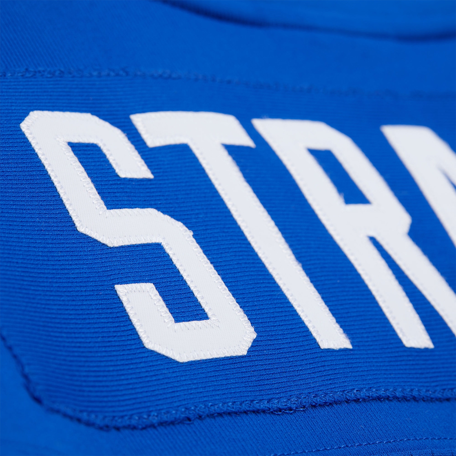 - Twill Appliques: Sewn-on numbers on the front, back, and sleeves, plus player name "STRAHAN" on the back.